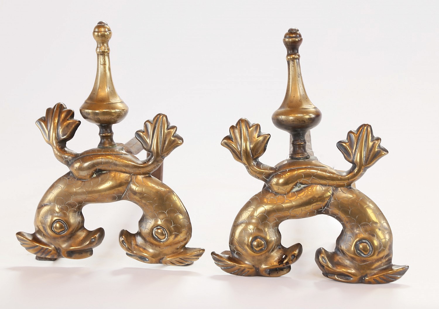 Pair of 19th Century Double Dolphin And Finial Brass Andirons Consign Now DeptFurniture/Decorative ArtsSizeHeight 13 in. Depth 16 in. Pair of 19th Century Double Dolphin And Finial Brass Andirons Height 13 in. Depth 16 in. Please note that this auction has ended. Click here for an overview of this auction.