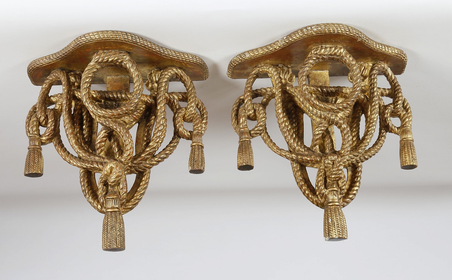 Pair of Gilt Composition Rope Brackets Consign Now DeptFurniture/Decorative Arts Pair of Gilt Composition Rope Brackets with Tassels Please note that this auction has ended. Click here for an overview of this auction.