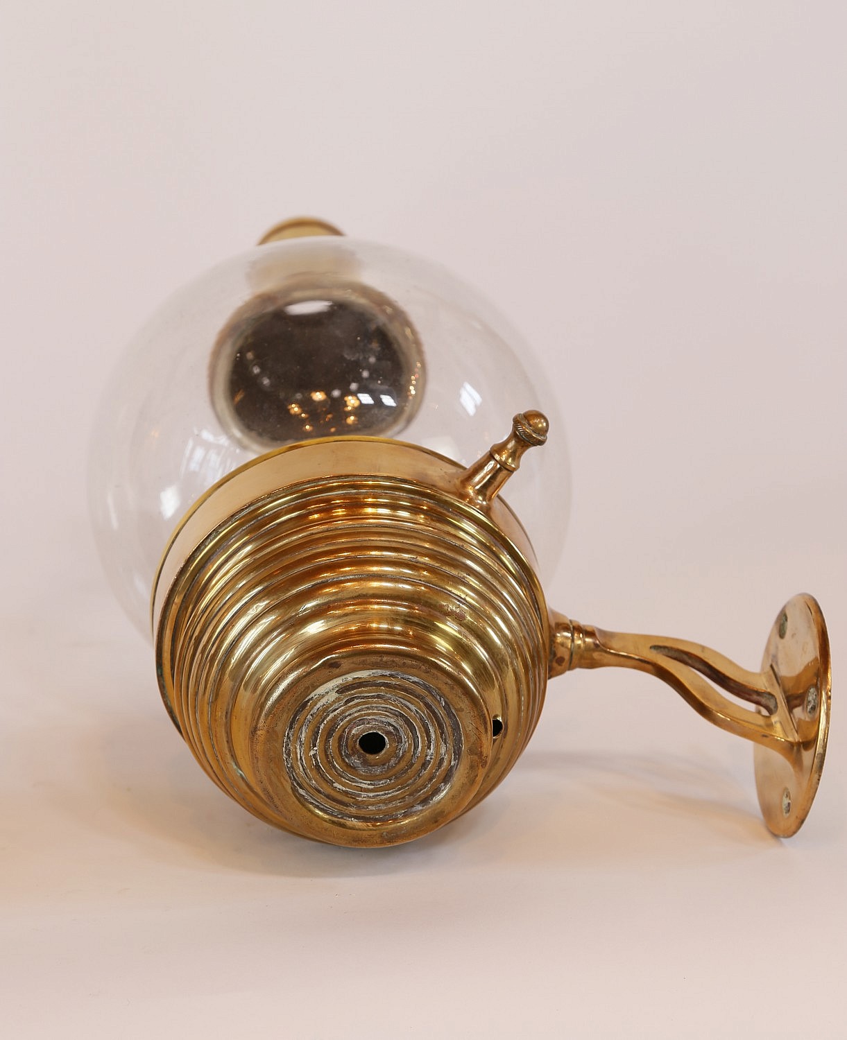 Pair of Brass and Glass Globe Light Fixtures, with brass wall mounts