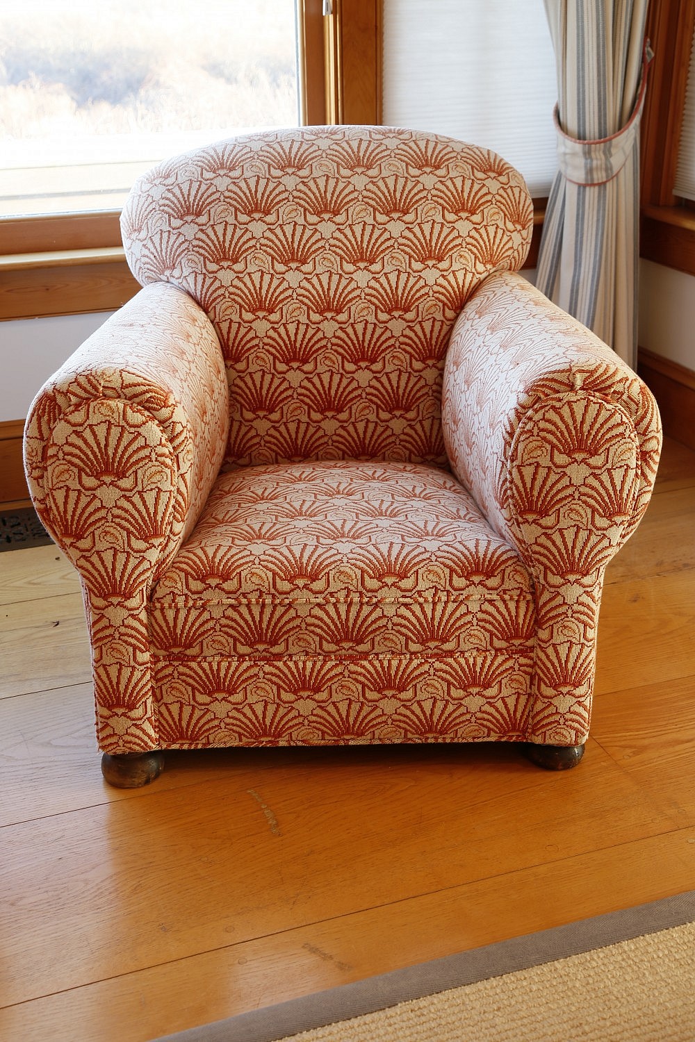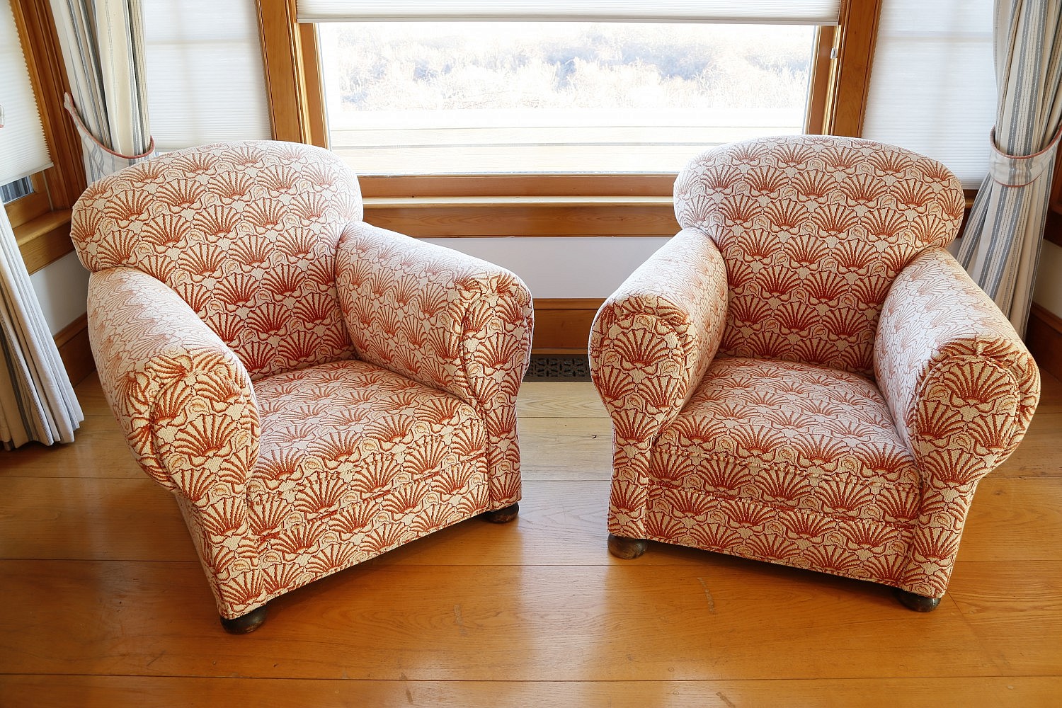 Pair of Upholstered Club Chairs Consign Now DeptCollections, Furniture/Decorative Arts Pair of Upholstered Club Chairs in scallop shell tapestry fabric Please note that this auction has ended. Click here for an overview of this auction.