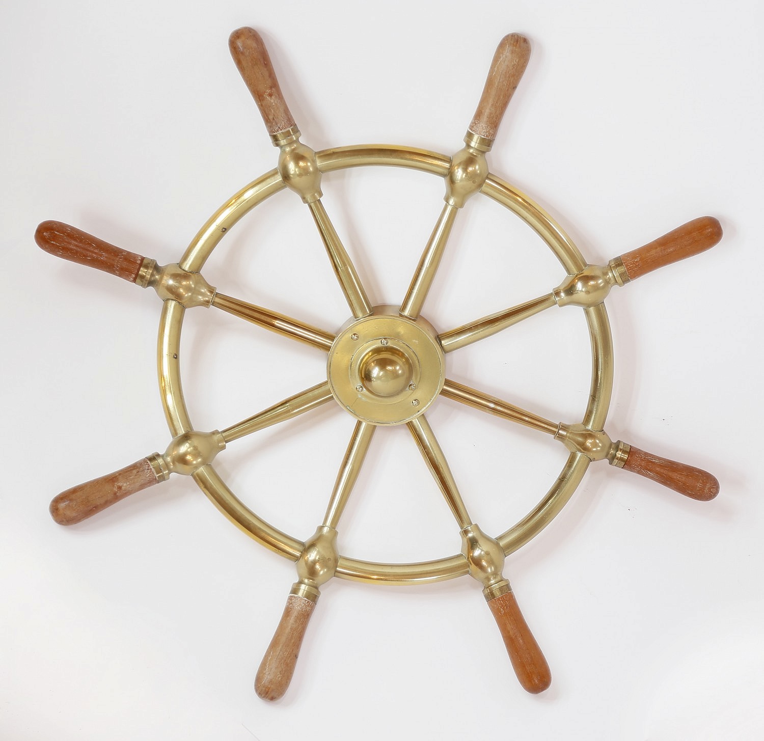 Solid Brass and Wood Handle Yacht Wheel Consign Now DeptFurniture/Decorative Arts, Maritime ArtsSizeDiameter 24 ½ in. Solid Brass and Wood Handle Yacht Wheel Diameter 24 ½ in. Please note that this auction has ended. Click here for an overview of this auction.