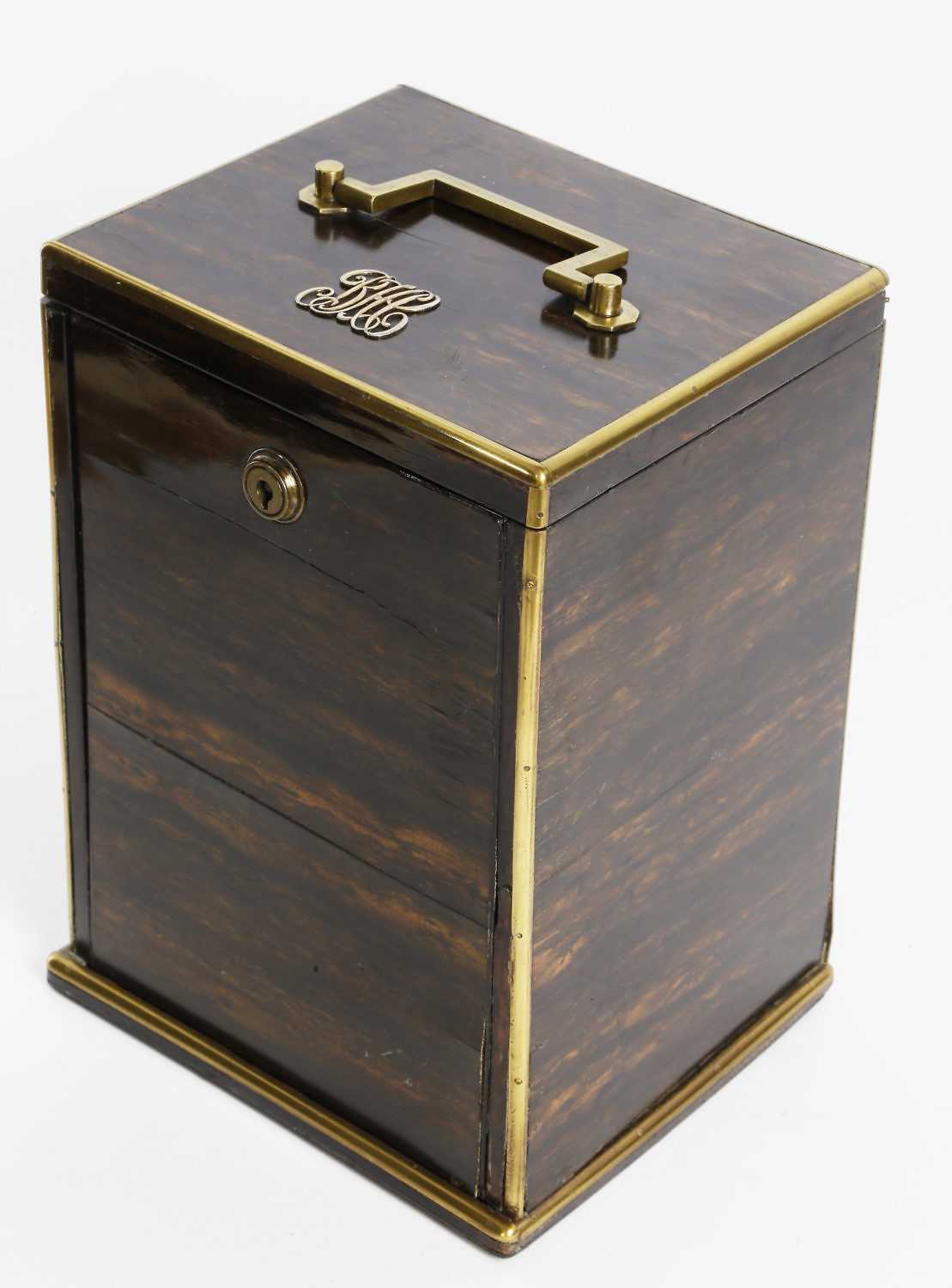 19th Century English Coromandel Wood Traveling Stationary Box Consign Now DeptFurniture/Decorative ArtsSizeHeight 9 in. Length 6 ¼ in. Width 5 ¼ 19th Century English Coromandel Wood Traveling Stationary Box brass trimmed box with lift top and drop front, completely fitted Height 9 in. Length 6 ¼ in. Width 5 ¼ in. Please note that this auction has ended. Click here for an overview of this auction.