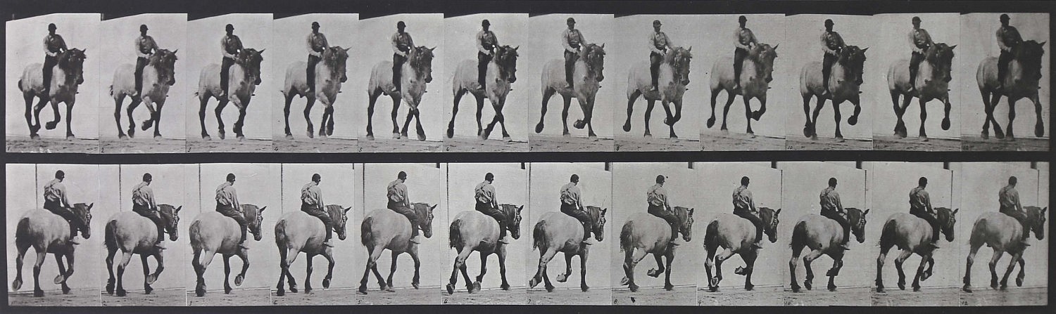 Today, Muybridge is known for his pioneering work on animal locomotion in 1877 and 1878, which used multiple cameras to capture motion in stop-motion photographs, and his zoopraxiscope, a device for projecting motion pictures that pre-dated the flexible perforated film strip used in cinematography. In the 1880s, he entered a very productive period at the University of Pennsylvania in Philadelphia, producing over 100,000 images of animals and humans in motion, capturing what the human eye could not distinguish as separate movements.