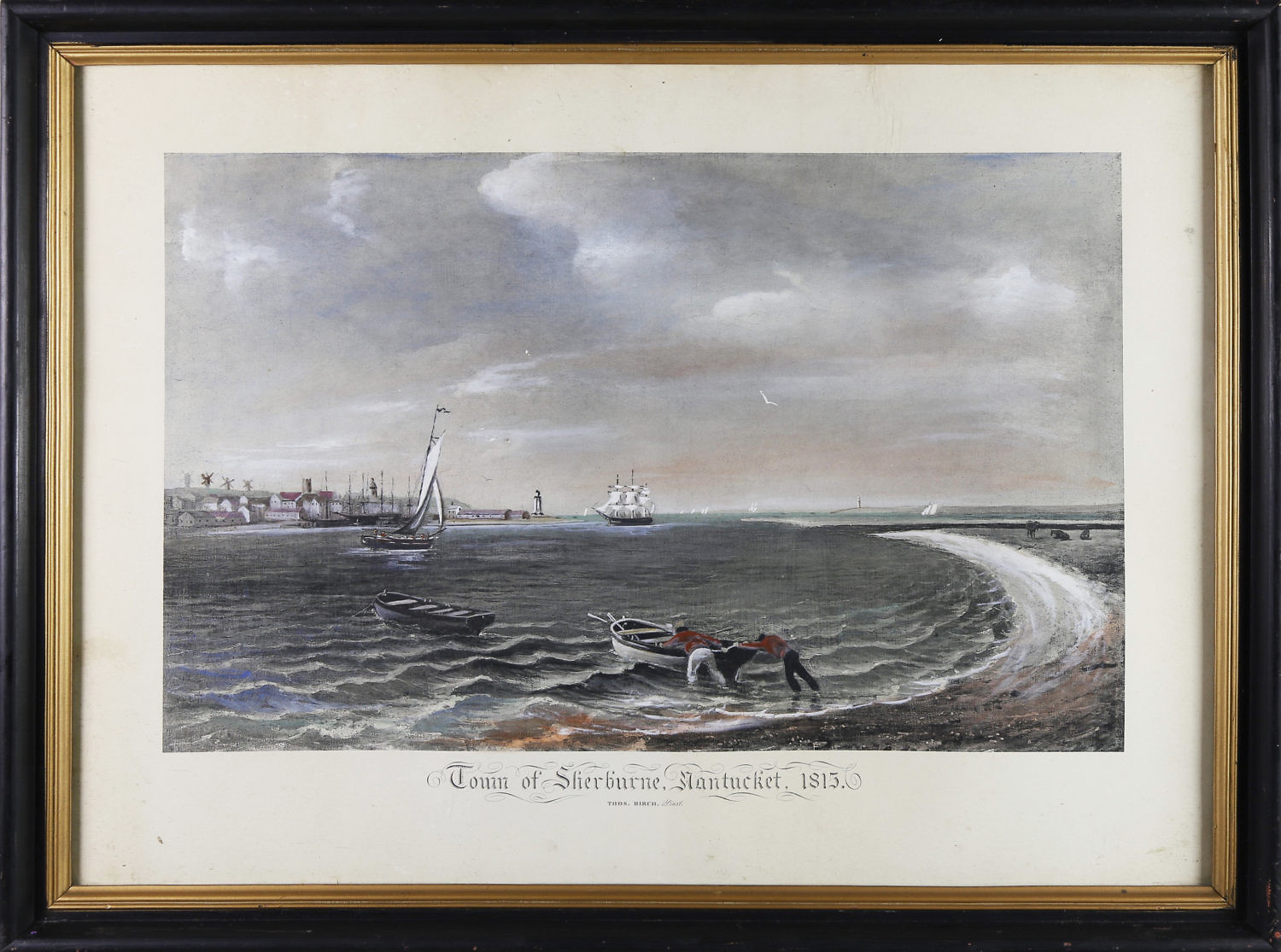 Antique Polychrome Print, “Town of Sherburne, Nantucket 1815” Consign Now DeptMaritime Arts, Nantucket ArtSize16 ½ in. x 26 in. Overall 25 ¾ in. x 34 ¼ in. Antique Polychrome Print, “Town of Sherburne, Nantucket 1815”, after Thomas Birch ( American 1779-1851) original oil painting 16 ½ in. x 26 in. Overall 25 ¾ in. x 34 ¼ in. Please note that this auction has ended. Click here for an overview of this auction.