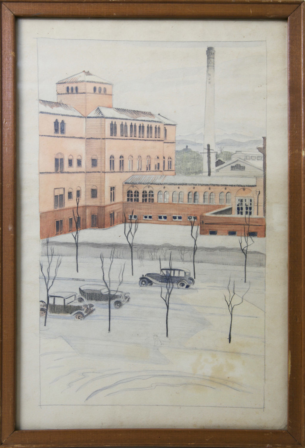 Group of Three Mid-Century Landmark Watercolors, pencil and watercolor on paper