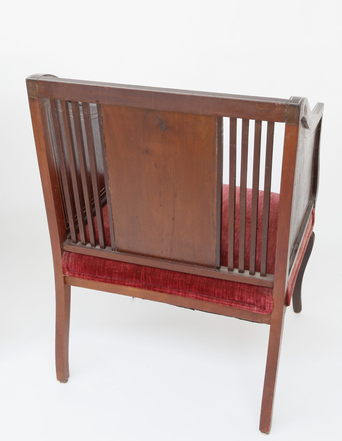 Pair of Edwardian Inlaid Mahogany Tub Chairs Consign Now DeptFurniture/Decorative ArtsSizeHeight 33 ½ in. Width 24 in. Depth 23 in. Pair of Edwardian Inlaid Mahogany Tub Chairs, circa 1900, line inlay throughout, back-splat with floral wreath surrounding a torch with banner, inlaid with mother of pearl and cherry Height 33 ½ in. Width 24 in. Depth 23 in. Please note that this auction has ended. Click here for an overview of this auction.