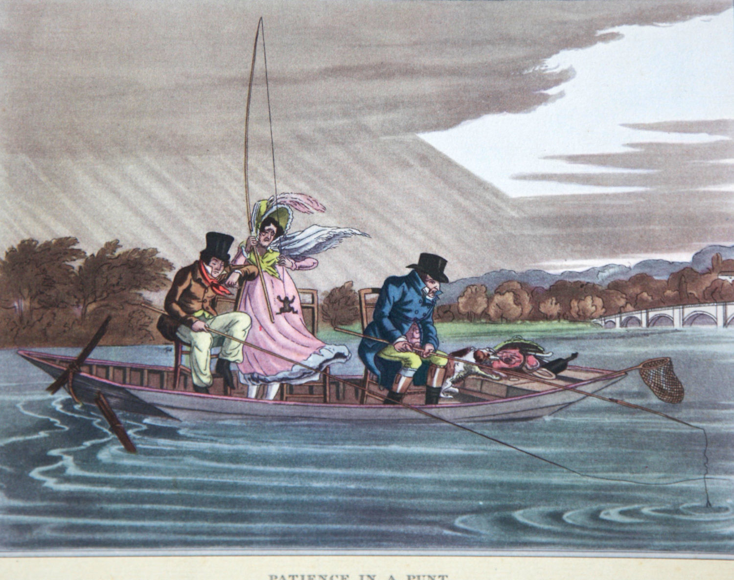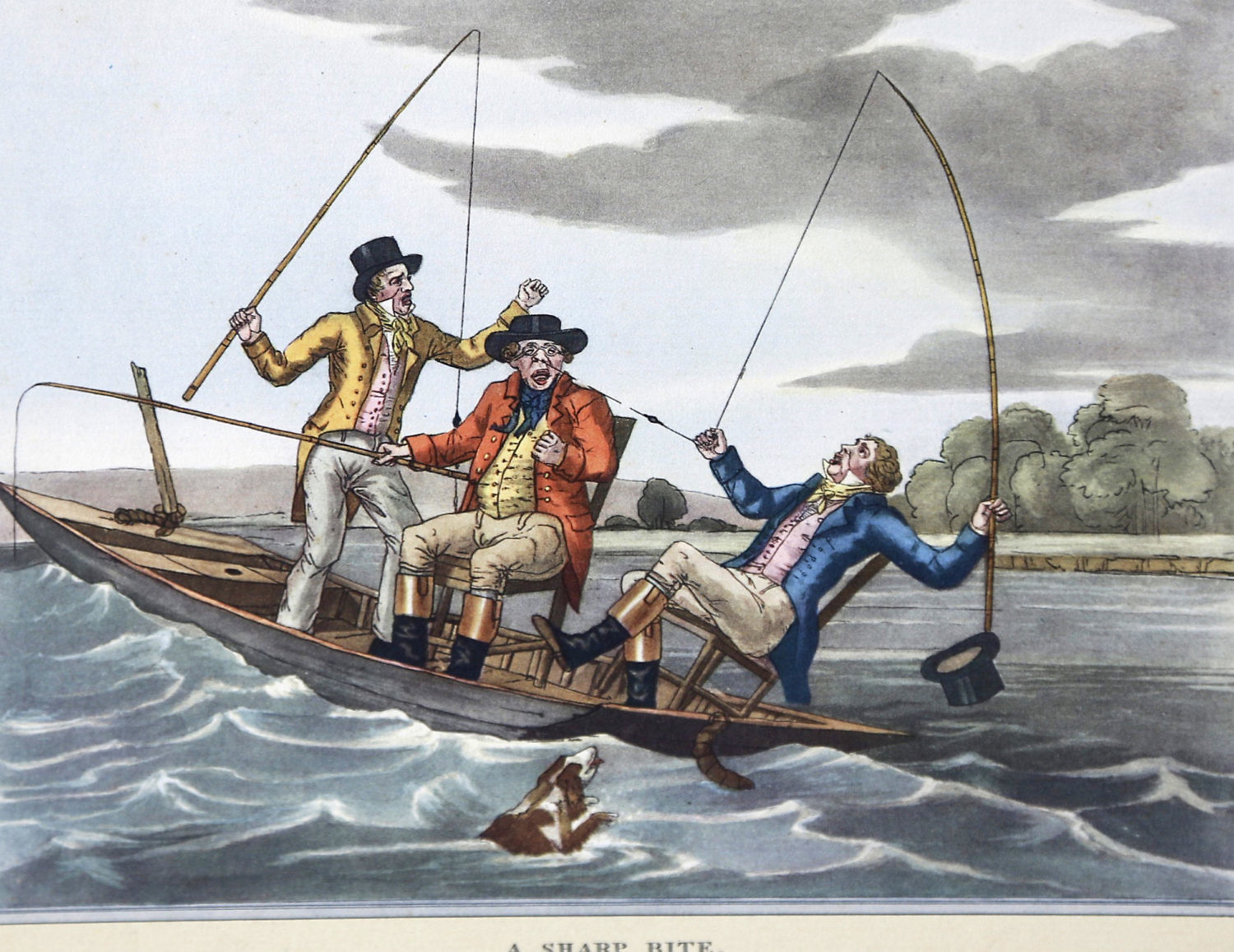 Set of Four Antique Comical Fishing Lithographs, published London, Thomas McLean, 26 Haymarket.