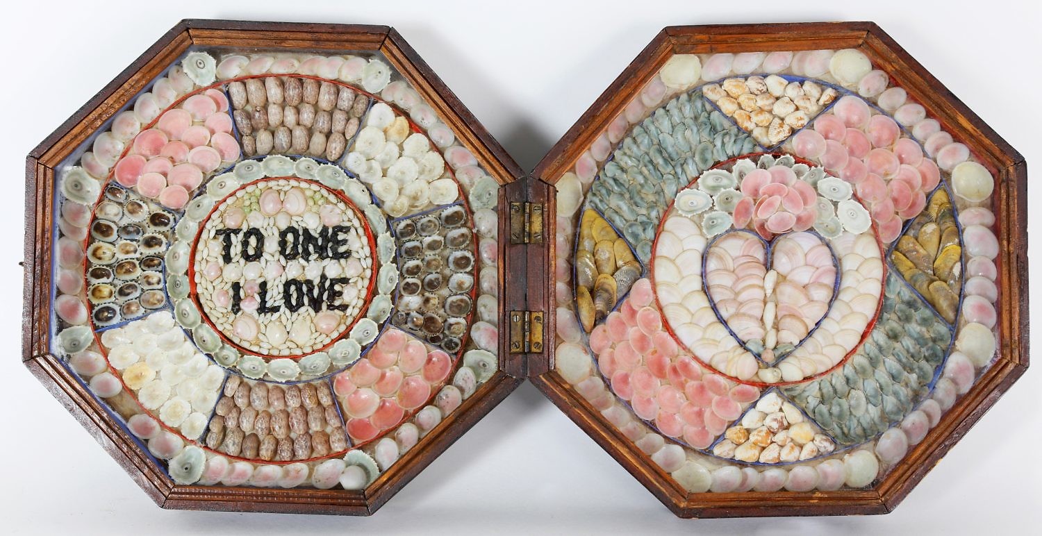 Double Sailor’s Valentine “To One I Love” Consign Now DeptAmericana and Folk Arts, Furniture/Decorative Arts, Maritime ArtsSizeDiameter 9 ¼ in. Sold for $4,064 Double Sailor’s Valentine “To One I Love”, 19th Century, alternating panels and heart design with many species of colorful seashells, in original mahogany hinged case. Diameter 9 ¼ in. Please note that this auction has ended. Click here for an overview of this auction.