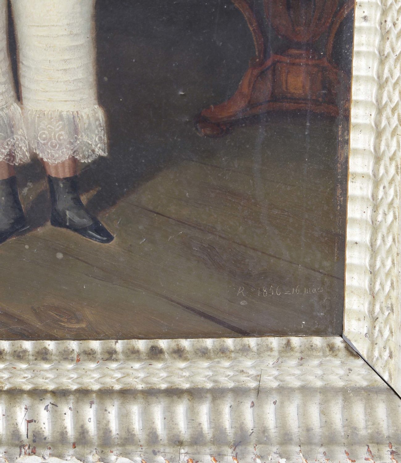 Oil on Panel “Naive Portrait of Twins with Their Cat in an Interior”, circa 1856