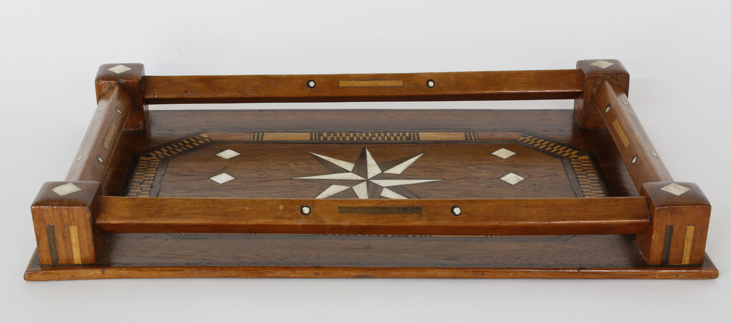 Whaler Made Whale Ivory Inlaid Gallery Tray, 19th Century Consign Now Dept19th Century Scrimshaw, Furniture/Decorative Arts, Maritime ArtsSizeHeight 2 ¼ in. Width 20 in. Depth 12 in. Sold for $854 Whaler Made Whale Ivory Inlaid Gallery Tray, 19th Century, mahogany with various tropical wood, whale ivory compass rose and diamond inlays. Height 2 ¼ in. Width 20 in. Depth 12 in. Please note that this auction has ended. Click here for an overview of this auction.
