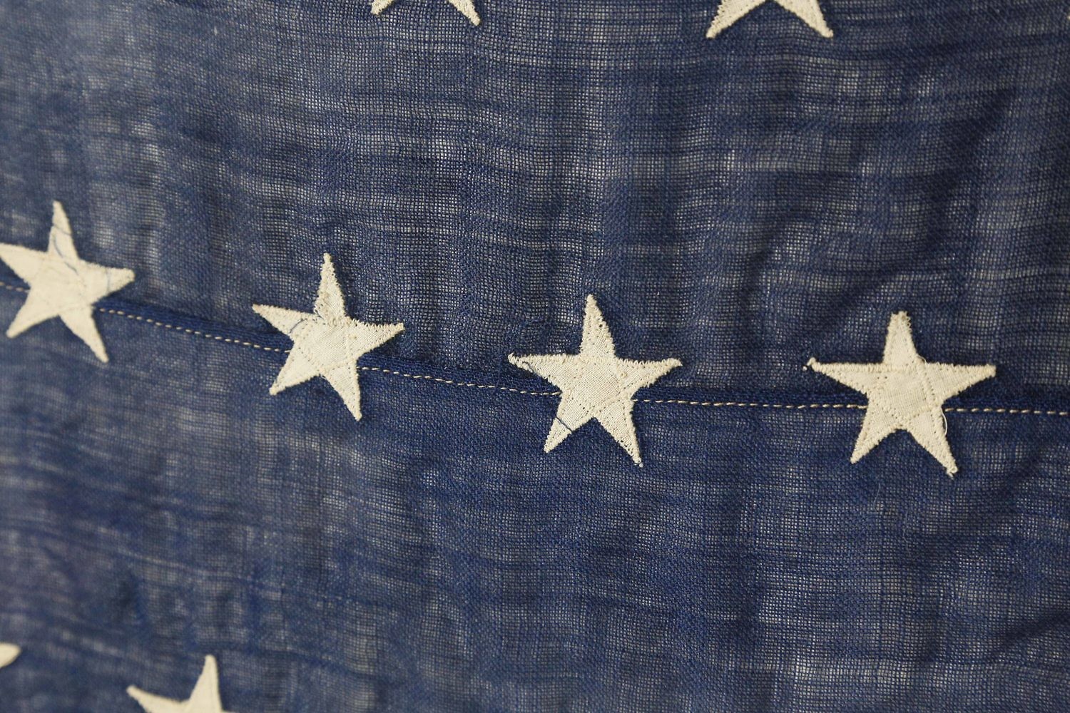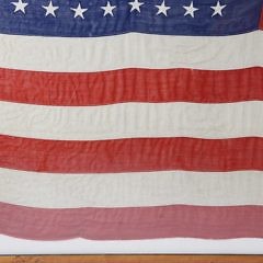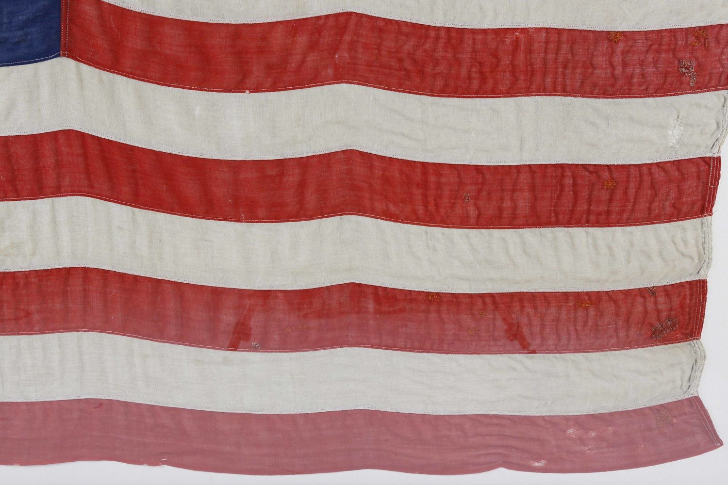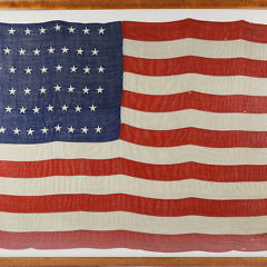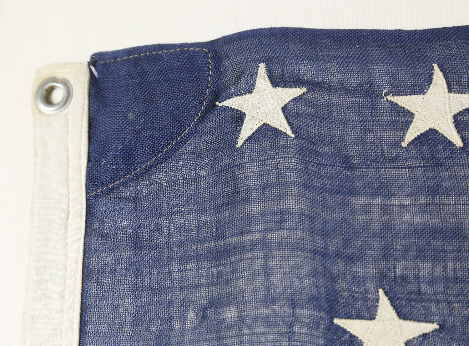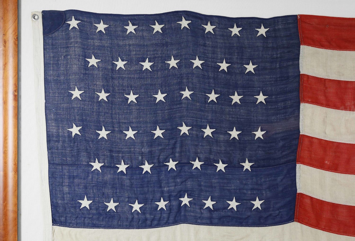 Antique 46 Star American Flag Consign Now DeptCollections, Maritime ArtsSizeOverall 57 in. x 76 in. Antique 46 Star American Flag, flown from 1908-1912, wool bunting construction with small period hand sewn repairs. Housed in a contemporary bird eye maple frame. Overall 57 in. x 76 in. Please note that this auction has ended. Click here for an overview of this auction.