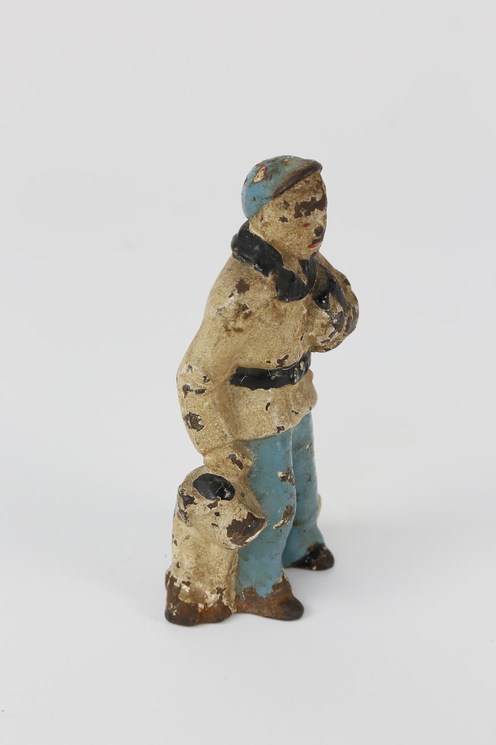 Antique Cast Iron Figural Doorstop of an Adolescent Scholar Consign Now DeptAmericana and Folk Arts, CollectionsSizeHeight 5.25 in. Antique Cast Iron Figural Doorstop of an Adolescent Scholar, in blue hat and school uniform clutching his text books under his arm with his dog wrapped around his legs. Height 5.25 in. Please note that this auction has ended. Click here for an overview of this auction.