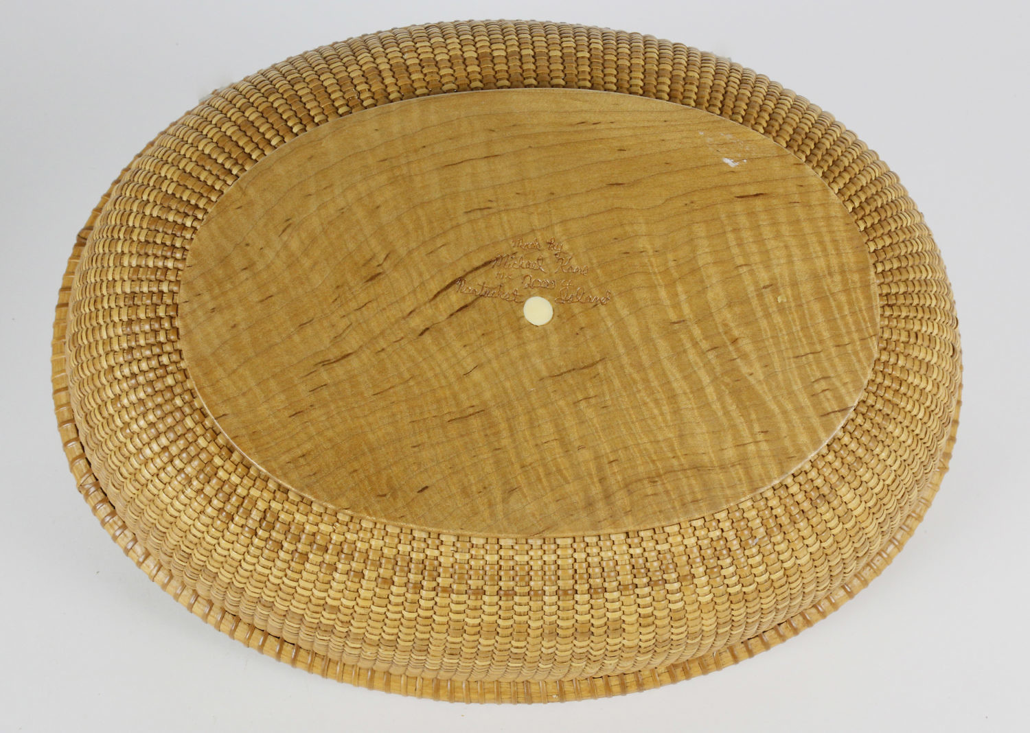 Michael Kane Nantucket Oval Two Handled Fruit Basket Consign Now DeptNantucket BasketsSizeHeight 3 in. Length 12 ½ in. Width 9 ½ in. Michael Kane Nantucket Oval Two Handled Fruit Basket, signed upon the base “Made by Michael Kane, 2000, Nantucket Island” on a tiger maple base with insert Lincoln penny and twin heart handles. Height 3 in. Length 12 ½ in. Width 9 ½ in. Provenance: Estate of Nan Lampe, Nantucket Island Please note that this auction has ended. Click here for an overview of this auction.