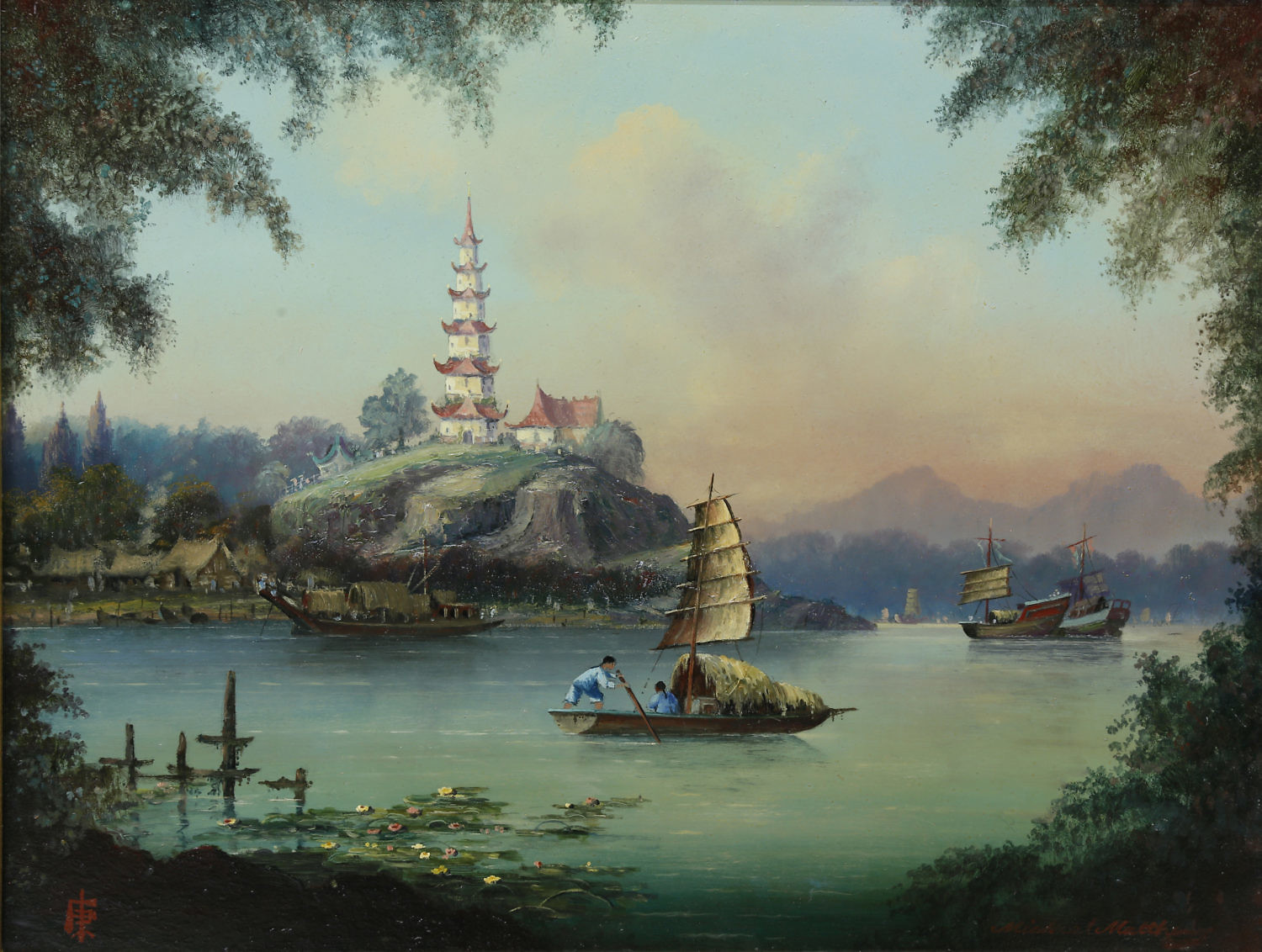 Michael Matthews Chinese Export Style Oil , “Pagoda at Whampoa Reach” Consign Now DeptAsian Arts/China Trade, Fine ArtsSize12 in. x 16 in. Overall 20 ¼ in. x 24 ½ in. Michael Matthews (England b. 1933) Chinese Export Style Oil on Canvas, “The Pagoda at Whampoa Reach”, signed lower right, “Michael Matthews”. 12 in. x 16 in. Overall 20 ¼ in. x 24 ½ in. Provenance: Estate of Linda Loring, 6 Louisburg Square, Boston Please note that this auction has ended. Click here for an overview of this auction.