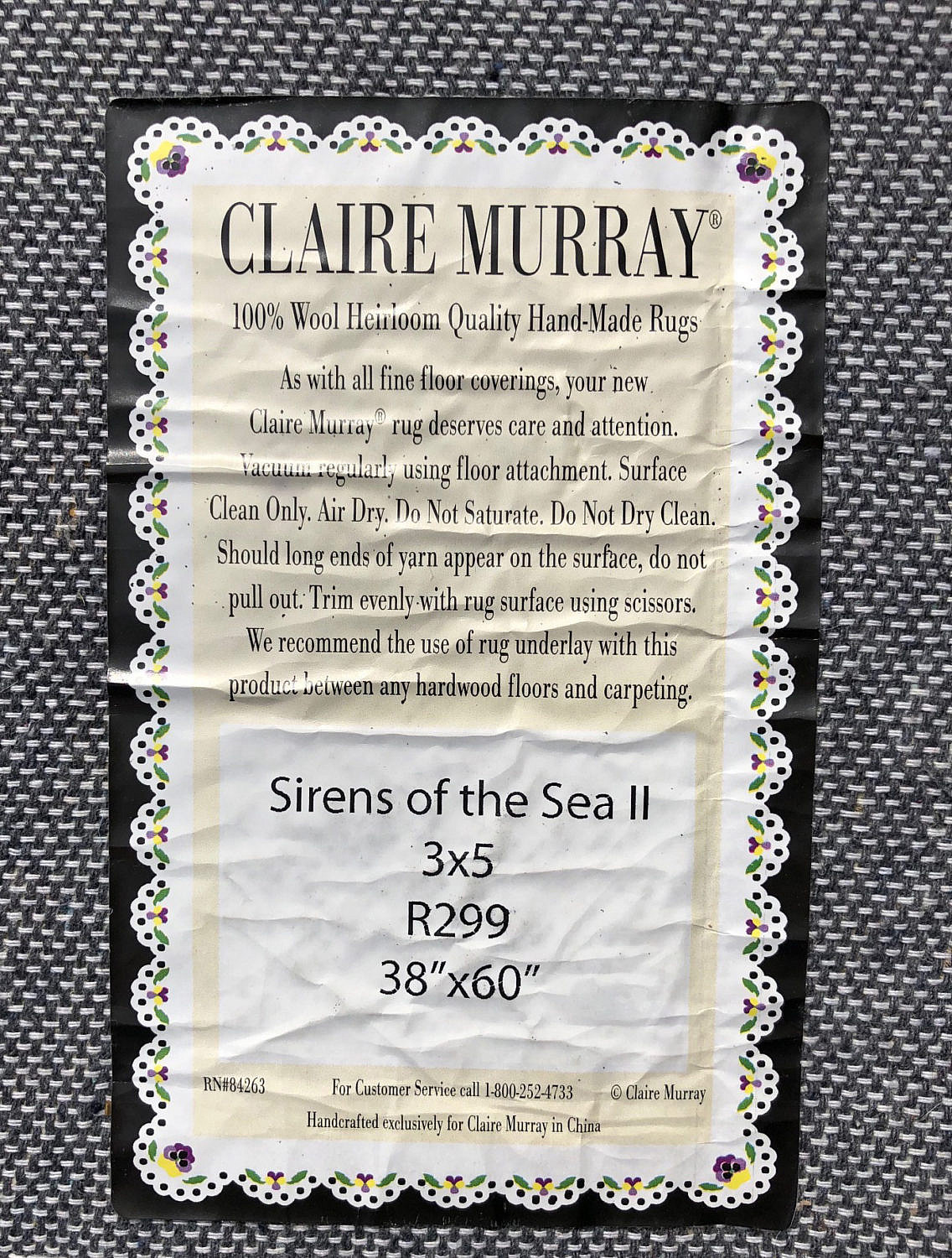 Claire Murray Hooked Rug “Sirens of the Sea II” Consign Now DeptCarpets, Nantucket ArtSize3 Ft. x 5 Ft. Claire Murray Hooked Rug “Sirens of the Sea II”, a Nantucket townscape with mermaids and seashells 3 Ft. x 5 Ft. Please note that this auction has ended. Click here for an overview of this auction.