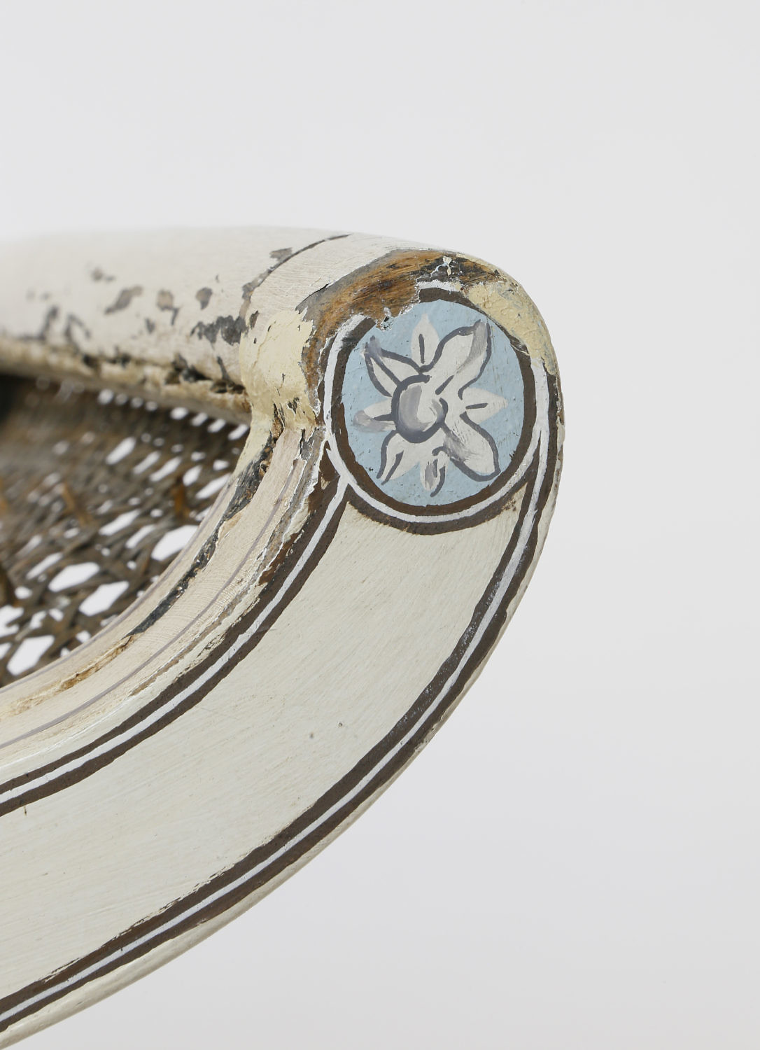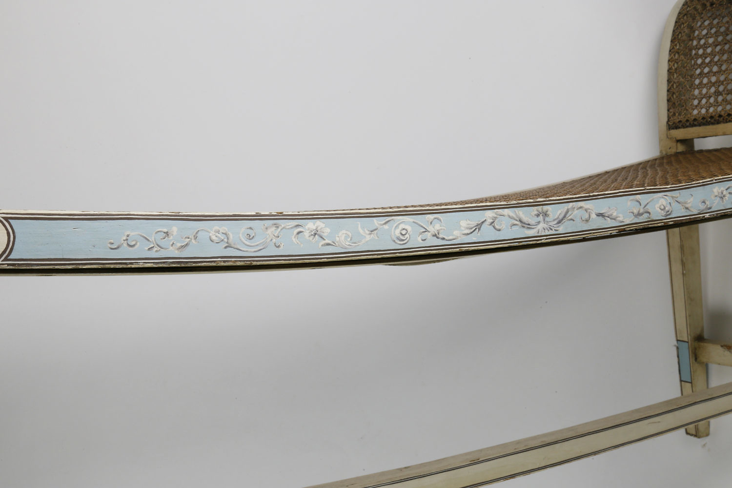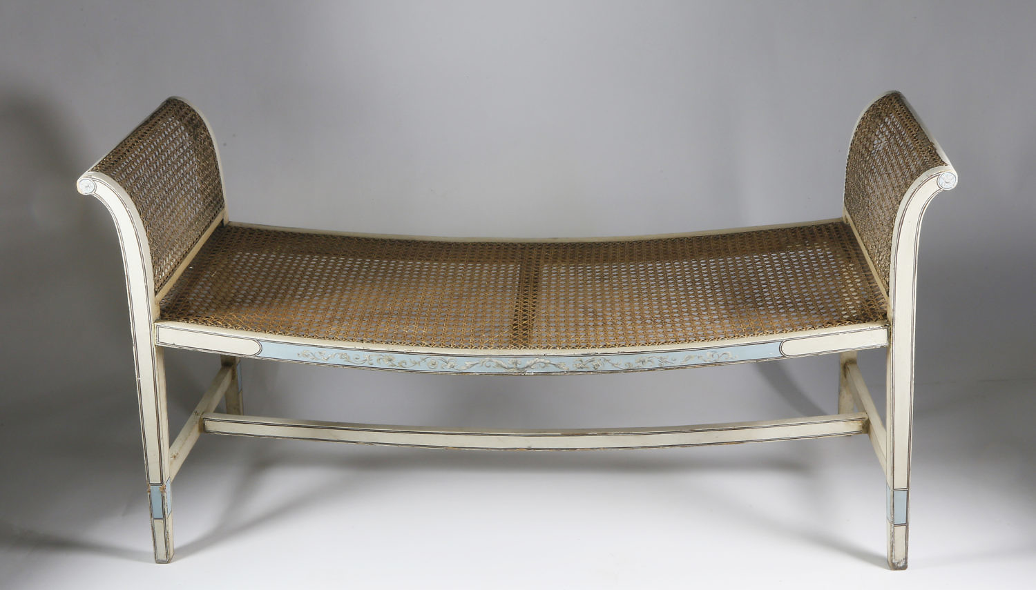 Decorated Caned Window Bench, 19th Century Consign Now DeptFurniture/Decorative ArtsSizeHeight 17 in. Sides Height 27 in. Depth 18 in. Decorated Caned Window Bench, 19th Century, painted on both sides with blue panels at the ankles and seat rail with additional floral vines. Seat Height 17 in. Sides Height 27 in. Depth 18 in. Please note that this auction has ended. Click here for an overview of this auction.