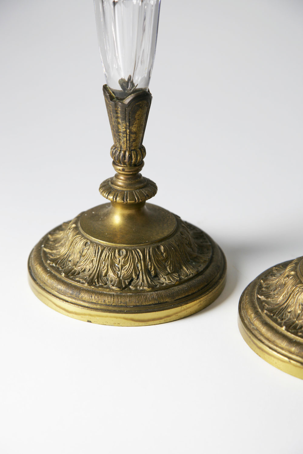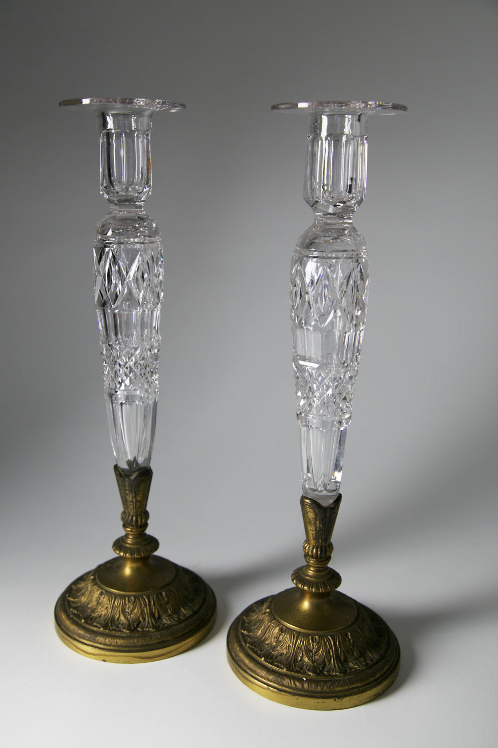 Pair of Pairpoint Cut Crystal and Bronze Candlesticks Consign Now DeptFurniture/Decorative ArtsSizeHeight 16 in. Pair of Pairpoint Cut Crystal and Bronze Candlesticks, cut crystal standard mounted in bronze leaf, chiseled bases, stamped, “Pairpoint C 6166” Height 16 in. Please note that this auction has ended. Click here for an overview of this auction.