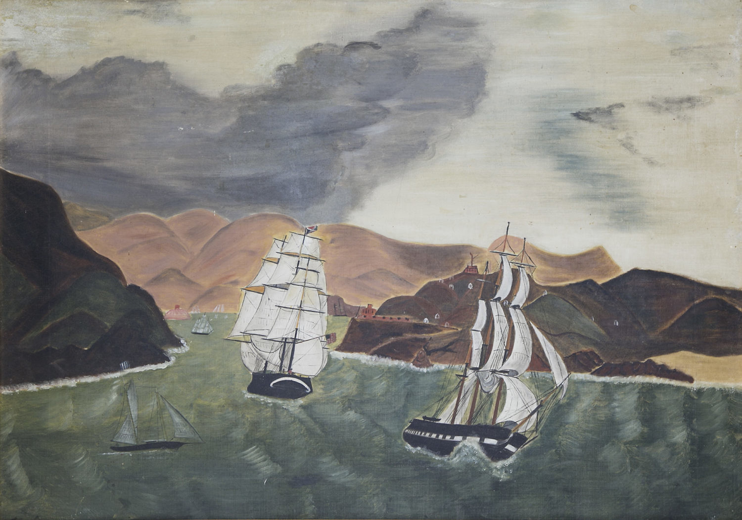 Primitive Oil on Canvas “Merchant Clipper Ships on the River”, 19th Century Consign Now DeptFine Arts, Maritime ArtsSize24 in. x 34 in. Overall 30 in. x 40 in. Primitive Oil on Canvas “Merchant Clipper Ships on the River”, 19th Century, unsigned 24 in. x 34 in. Overall 30 in. x 40 in. Provenance: Estate of Linda Loring, 6 Louisburg Square, Boston Please note that this auction has ended. Click here for an overview of this auction.