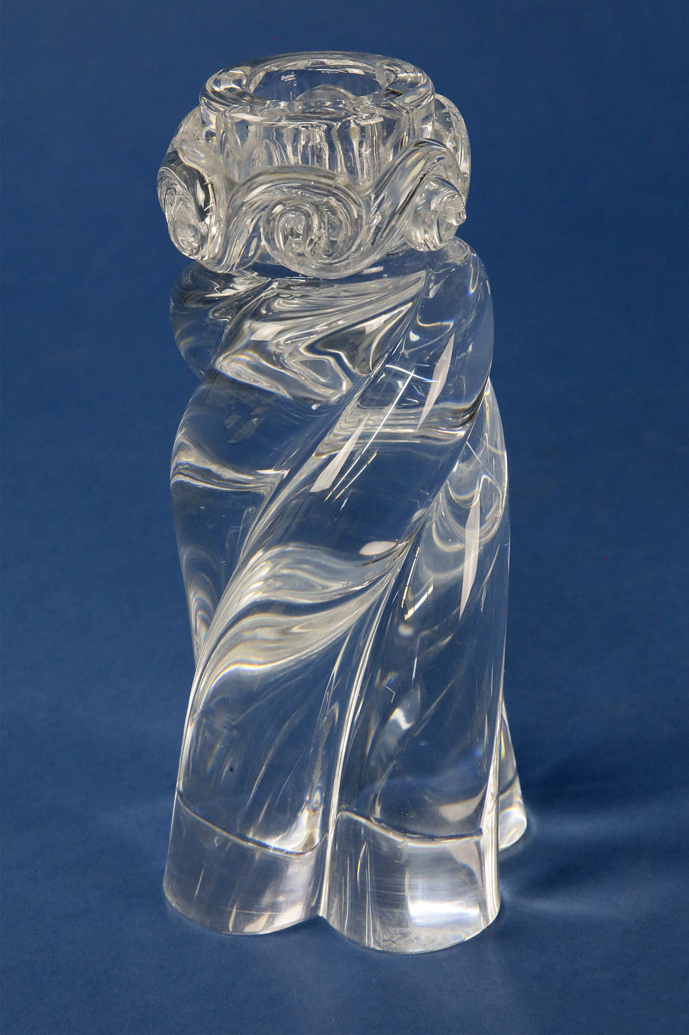Pair of Signed Baccarat Crystal Barley Twist Candlesticks Consign Now Dept20th Century Design, Ceramics & GlassSizeHeight 6.25 in. Pair of Signed Baccarat Crystal Barley Twist Candlesticks, with ocean wave shaped collar stamp signature on the base. Height 6.25 in. Please note that this auction has ended. Click here for an overview of this auction.