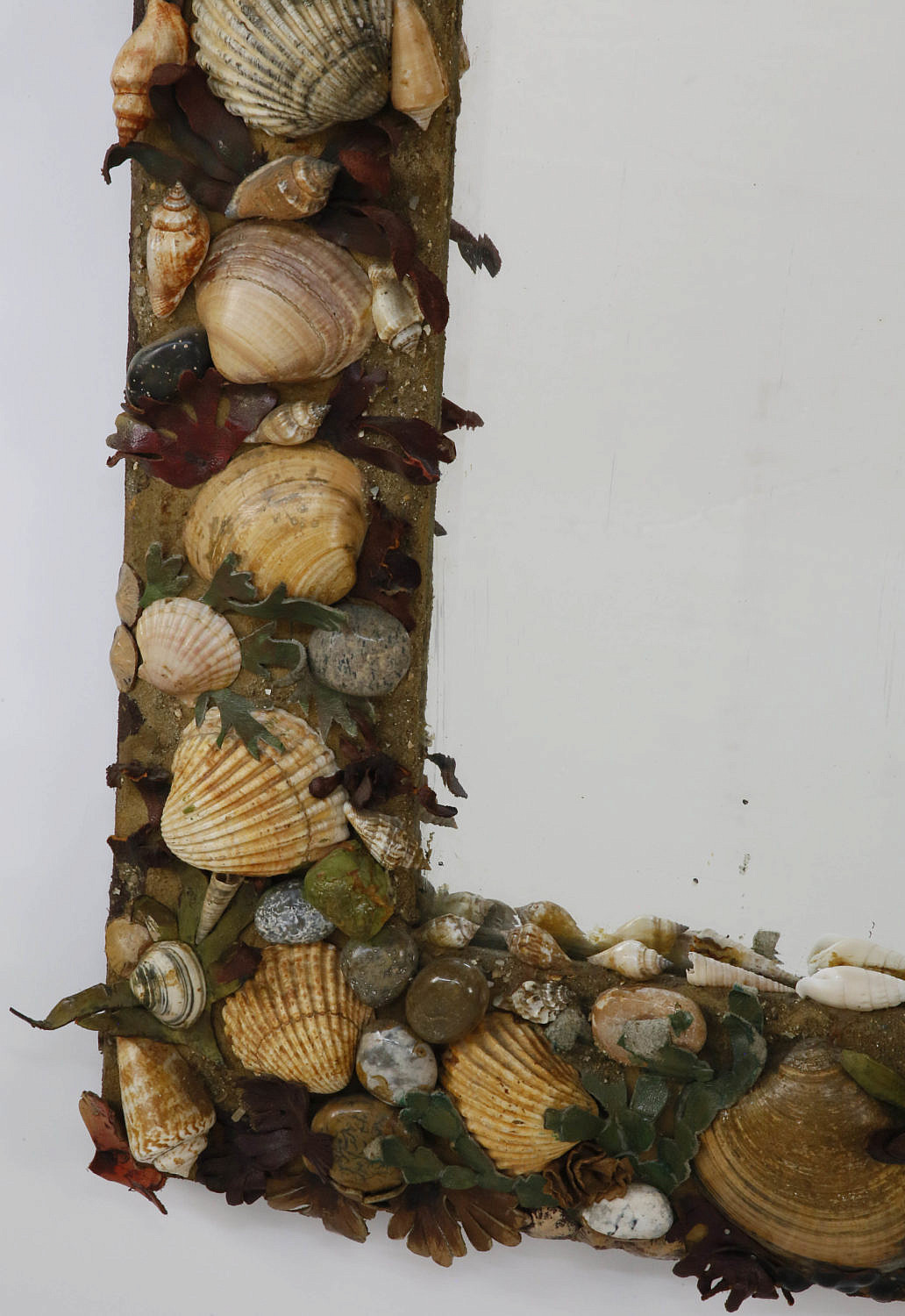 Shell Encrusted Mirror with Cut Leather Foliage and Tumbled Stones Consign Now DeptDecorative Arts, Furniture/Decorative ArtsSizeOverall 31 in. x 22 in. Shell Encrusted Mirror, rectangular form with cut leather foliage and tumbled stones Overall 31 in. x 22 in. Please note that this auction has ended. Click here for an overview of this auction.