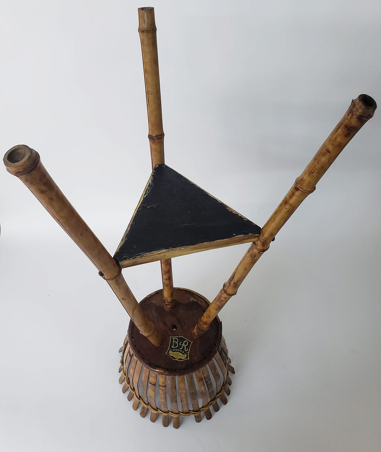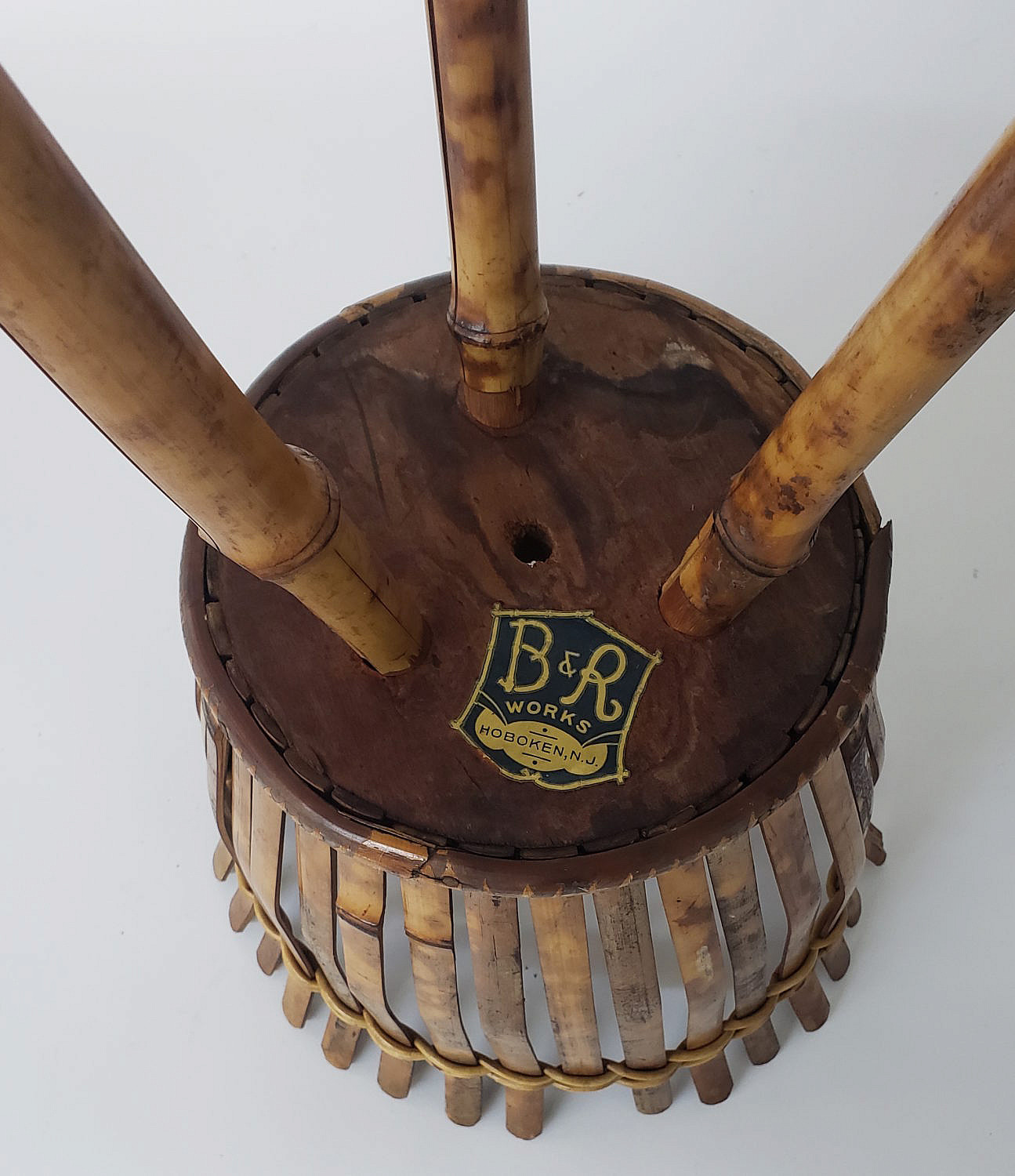 B & R Works Vintage Bamboo and Rattan Two Tier Plant Stand, Hoboken, N.J.