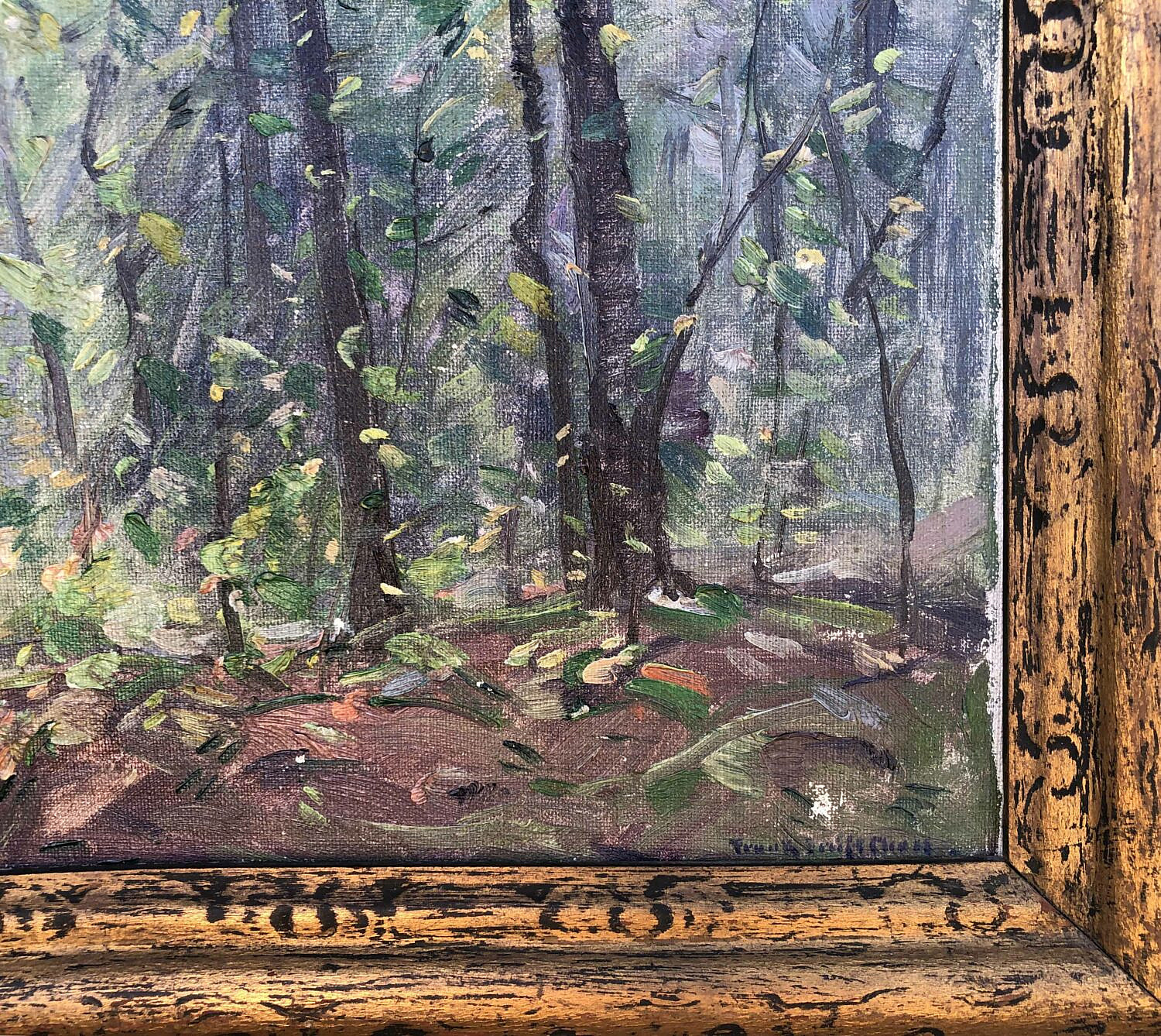 Frank Swift Chase (1886-1958) Oil on Artist Board “Squam Hidden Forest, Nantucket”, signed lower right Frank Swift Chase, in decorated molded wood frame