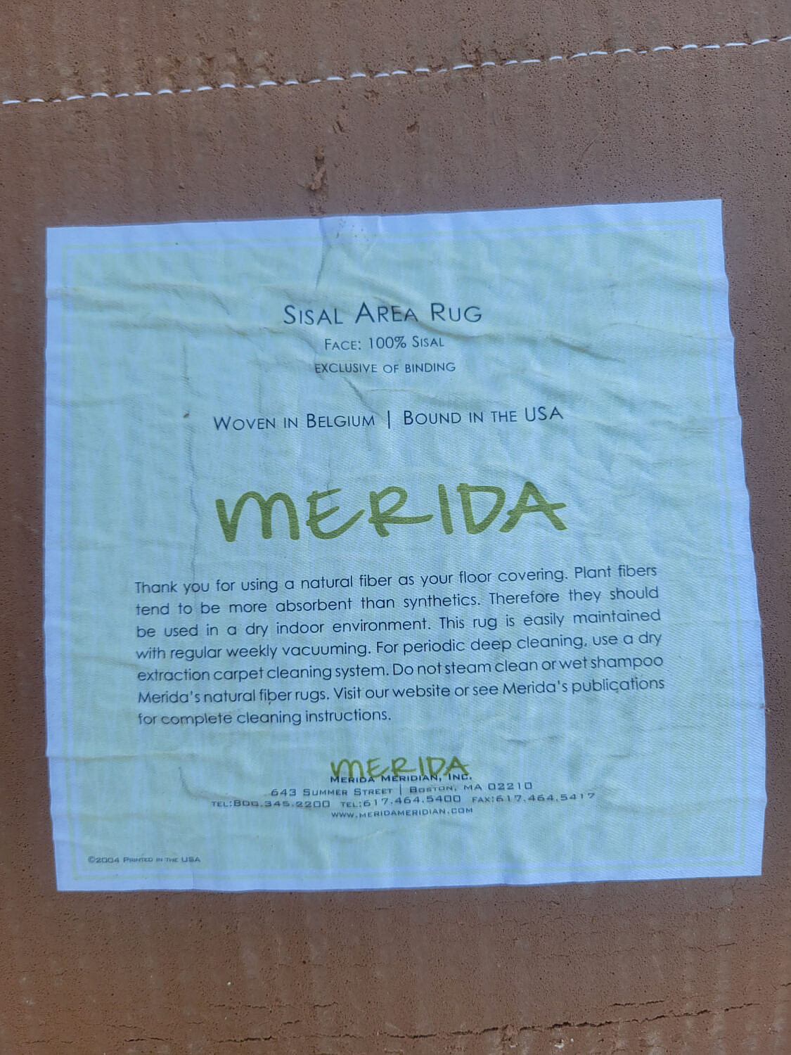 Merida Sisal Area Rug, woven in Belgium, bound in the USA