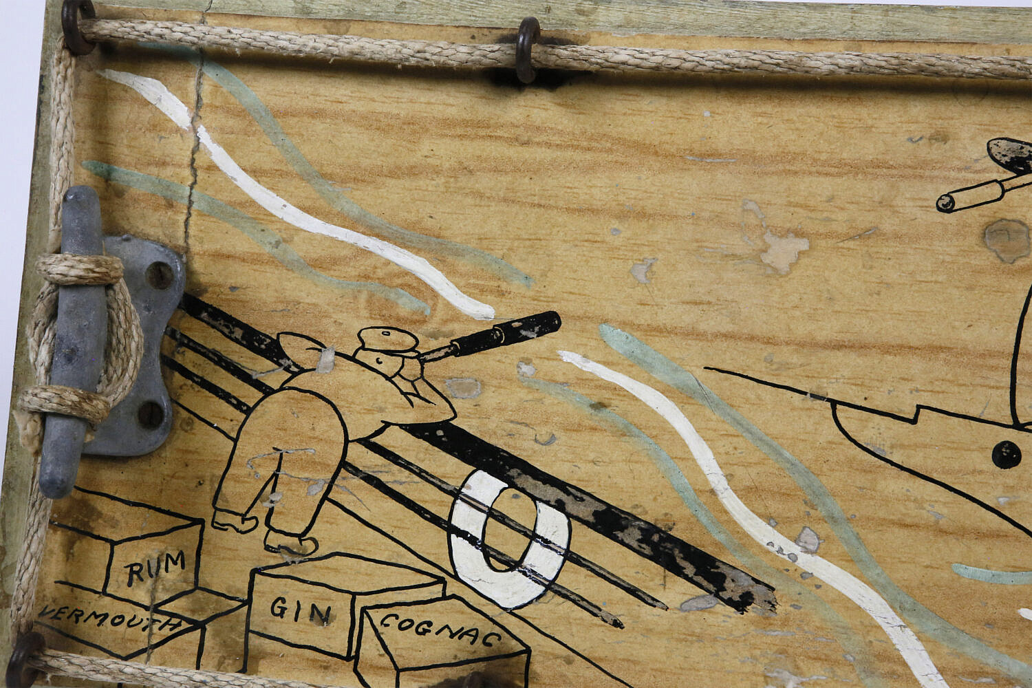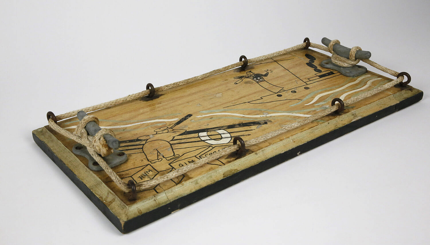 Nautical Theme “Prohibition” Cocktail Tray Consign Now DeptDecorative ArtsSize8.75 in. x 17.5 in. Nautical Theme “Prohibition” Cocktail Tray, with rope surround and ship’s cleat handles. 8.75 in. x 17.5 in. Please note that this auction has ended. Click here for an overview of this auction.