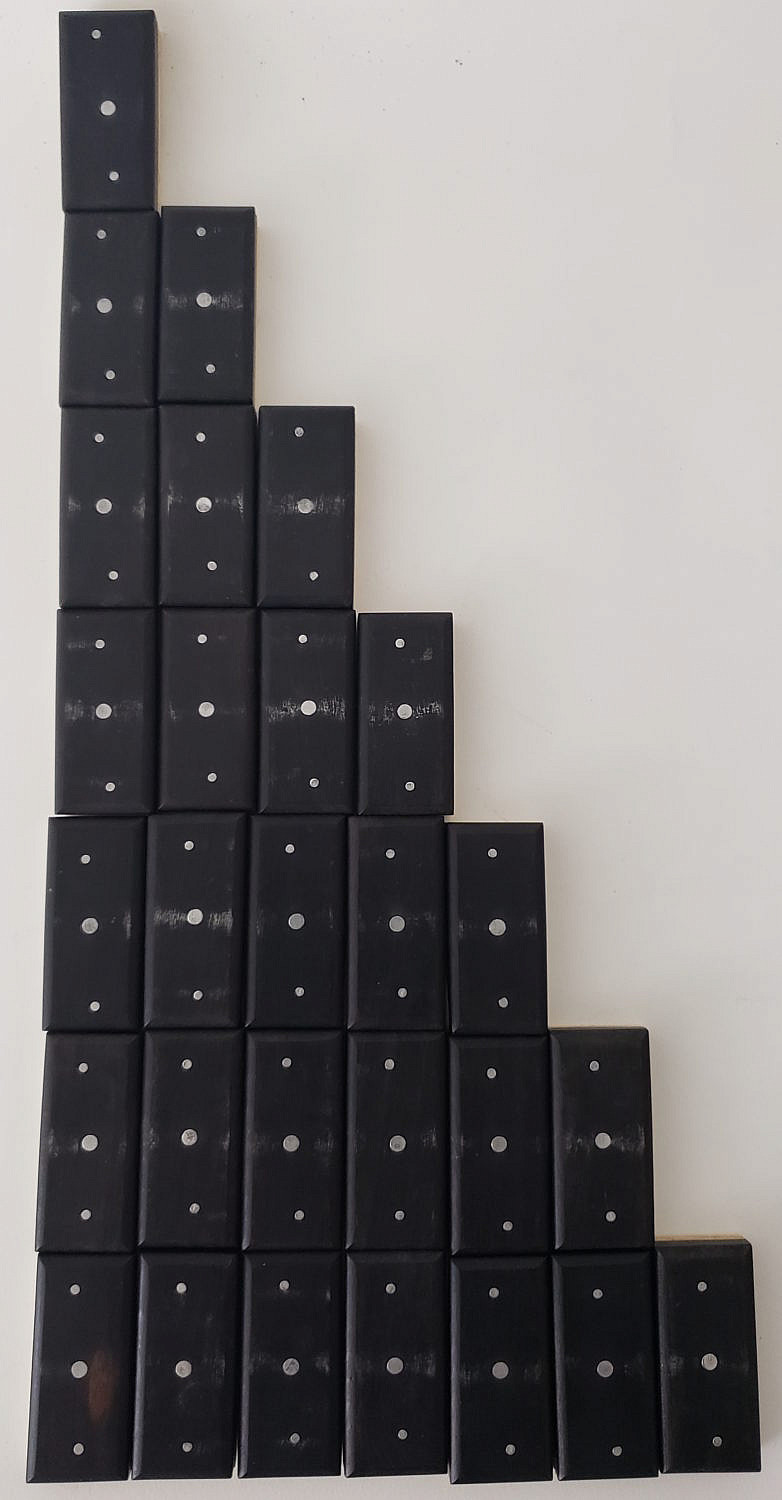 Complete Set of Double Six Robust Antique Whalebone and Ebony Dominoes Consign Now DeptAmericana and Folk Arts, Collections, Decorative Arts, Maritime ArtsSizeEach domino is a half an inch thick. Box 2 in. x 7.5 in. x 2.5 in. Complete Set of Double Six Robust Antique Whalebone and Ebony Dominoes, in custom fitted dovetailed slide top box, 28 tiles. Each domino is a half an inch thick. Box 2 in. x 7.5 in. x 2.5 in. Please note that this auction has ended. Click here for an overview of this auction.