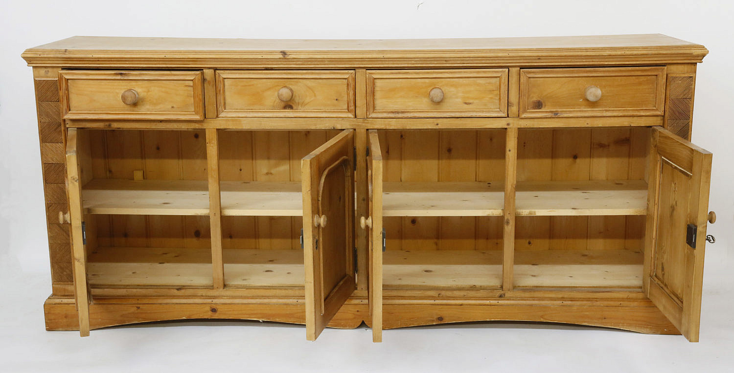 Contemporary Pine Sideboard Consign Now DeptFurnitureSizeHeight 36 in. Length 81 in. Depth 19 in. Contemporary Pine Sideboard, four drawers over four locking cupboard doors Height 36 in. Length 81 in. Depth 19 in. Please note that this auction has ended. Click here for an overview of this auction.