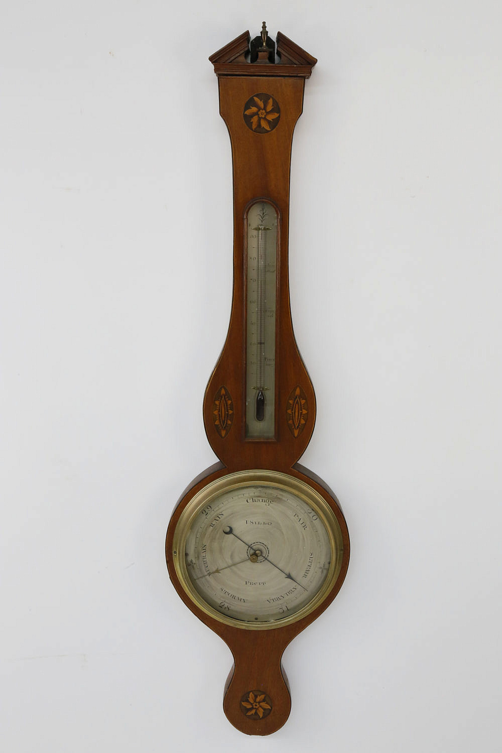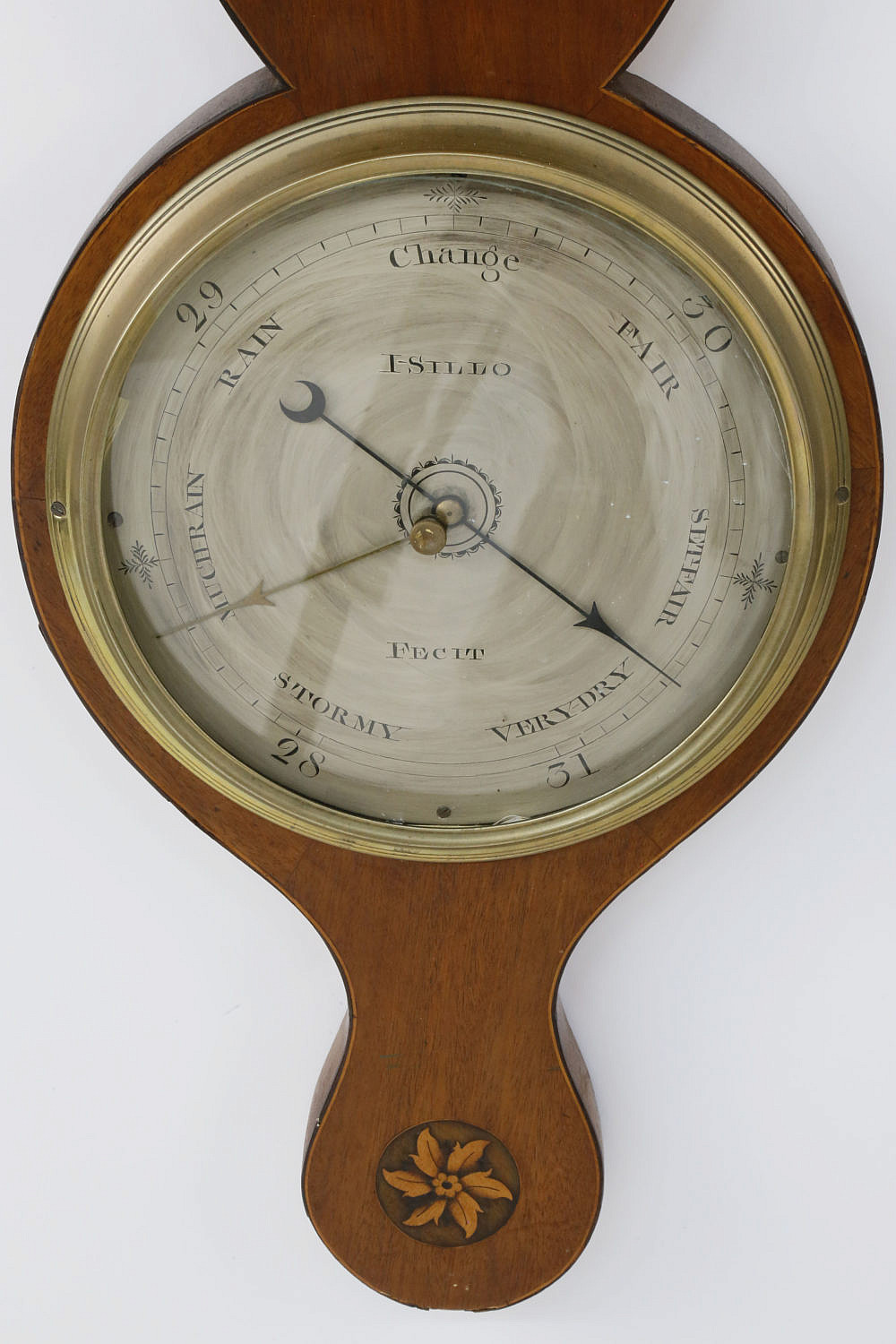 George III Inlaid Mahogany Wheel Barometer, c. 1790-1800 Consign Now DeptCollections, Decorative ArtsSizeLength 39 in. Width 10 in. George III Inlaid Mahogany Wheel Barometer, c. 1790-1800, the steel dial engraved: “Estilo Fecit” Length 39 in. Width 10 in. Please note that this auction has ended. Click here for an overview of this auction.