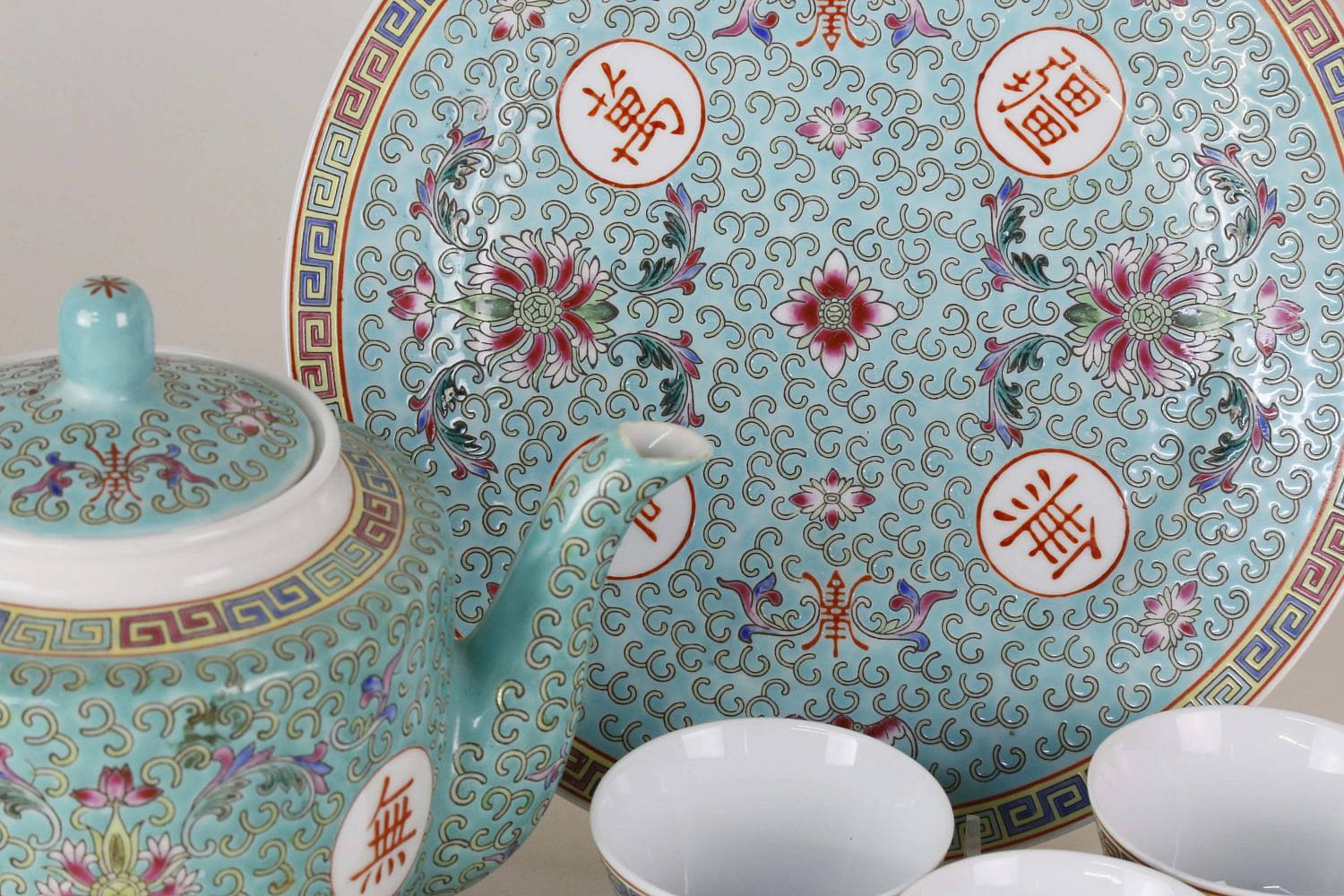 Six Piece Chinese Porcelain Tea Set Consign Now DeptAsian Arts/China Trade, Ceramics & GlassSizeserving platter diameter 10 in. Six Piece Chinese Porcelain Tea Set, comprising: tea pot four teacups serving platter Serving platter diameter 10 in. Please note that this auction has ended. Click here for an overview of this auction.