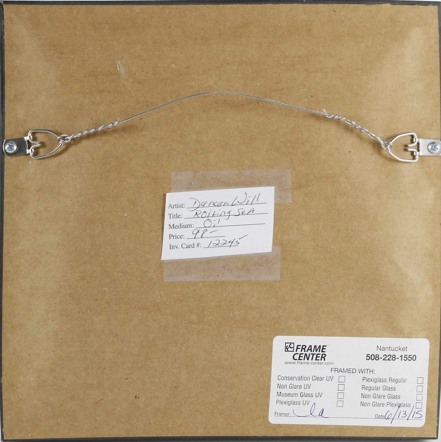Duncan Will Oil on Board “Roiling Sea” Consign Now DeptFine Arts, Maritime ArtsSize7.5 in. x 7.5 in. Overall 9.75 in. x 9.75 in. Duncan Will Oil on Board “Roiling Sea”, signed lower left, framed in a molded wood frame 7.5 in. x 7.5 in. Overall 9.75 in. x 9.75 in. Please note that this auction has ended. Click here for an overview of this auction.