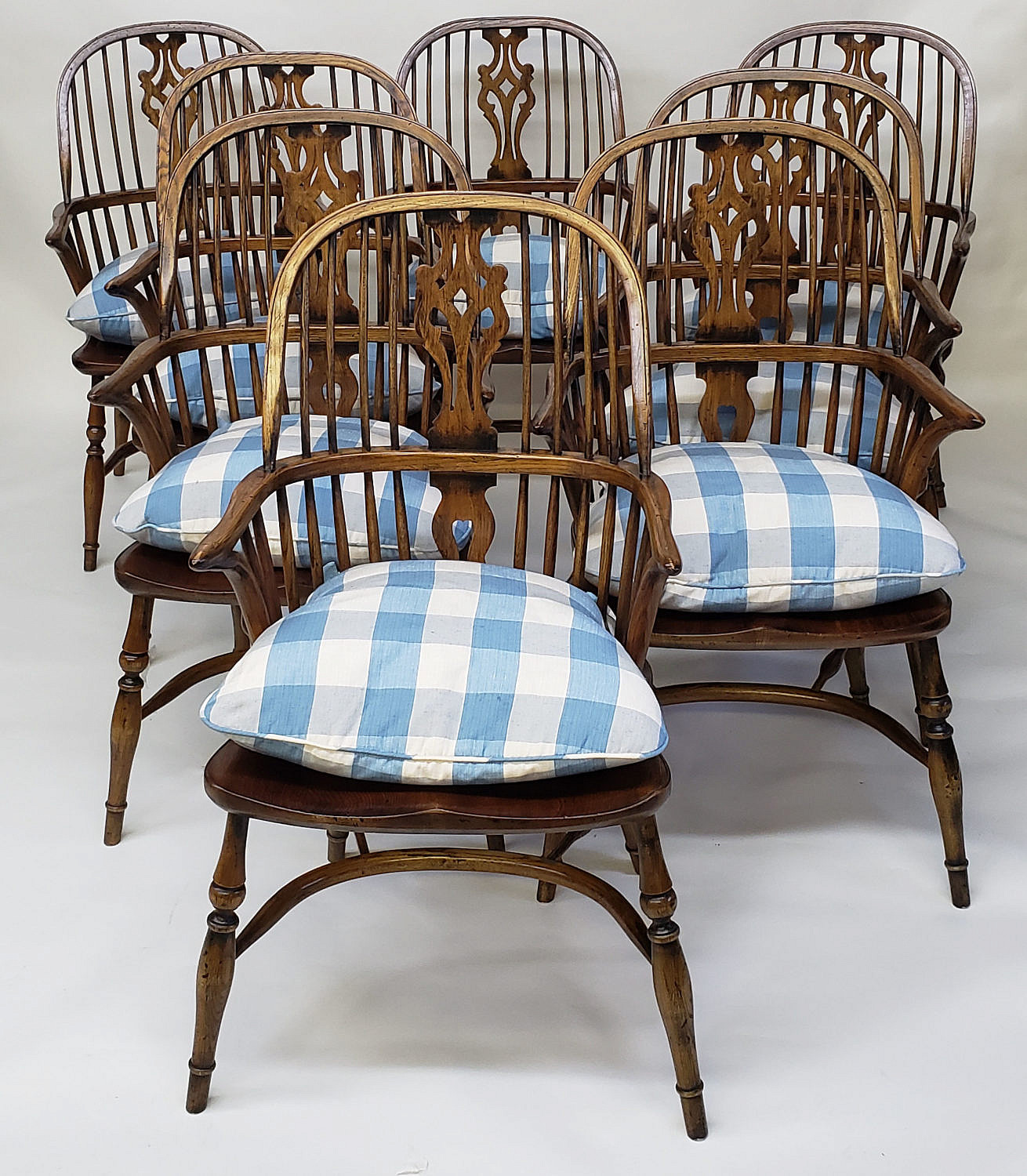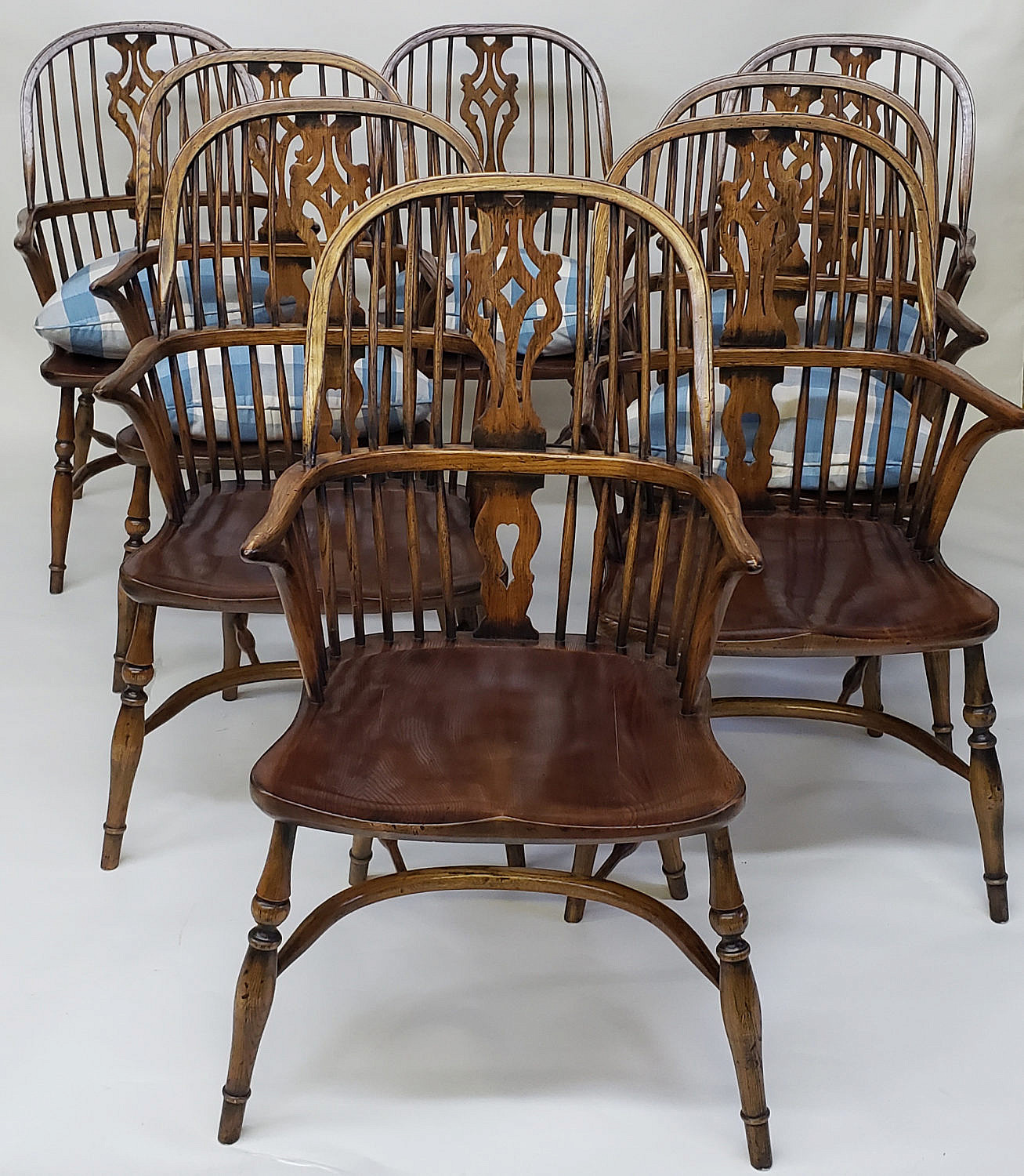 Eight English Elm Splat Back Windsor Dining Chairs Consign Now DeptFurniture, Furniture/Decorative ArtsSizeHeight 40 in. Width 22 in. Depth 18 in. Seat Height 17.5 in. Eight English Elm Splat Back Windsor Dining Chairs, each custom built with brass plaque, “Made in England”, affixed to the base. Height 40 in. Width 22 in. Depth 18 in. Seat Height 17.5 in. Please note that this auction has ended. Click here for an overview of this auction.