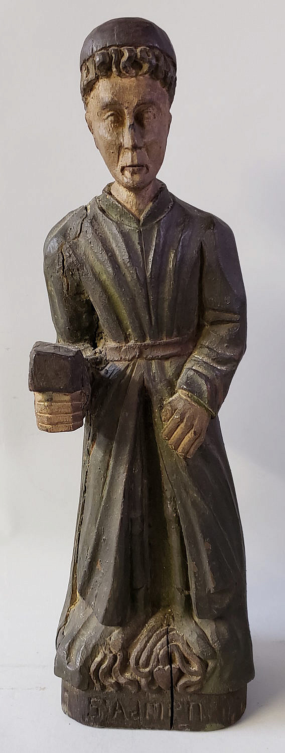 18th/17th Century Polychrome Carved Wood Figure of St. Adrien Consign Now DeptCollections, Furniture/Decorative ArtsSizeHeight 20 in. 18th/17th Century Polychrome Carved Wood Figure of St. Adrien Height 20 in. Provenance: Estate of Linda Loring, 6 Louisburg Square, Boston, Massachusetts Please note that this auction has ended. Click here for an overview of this auction.