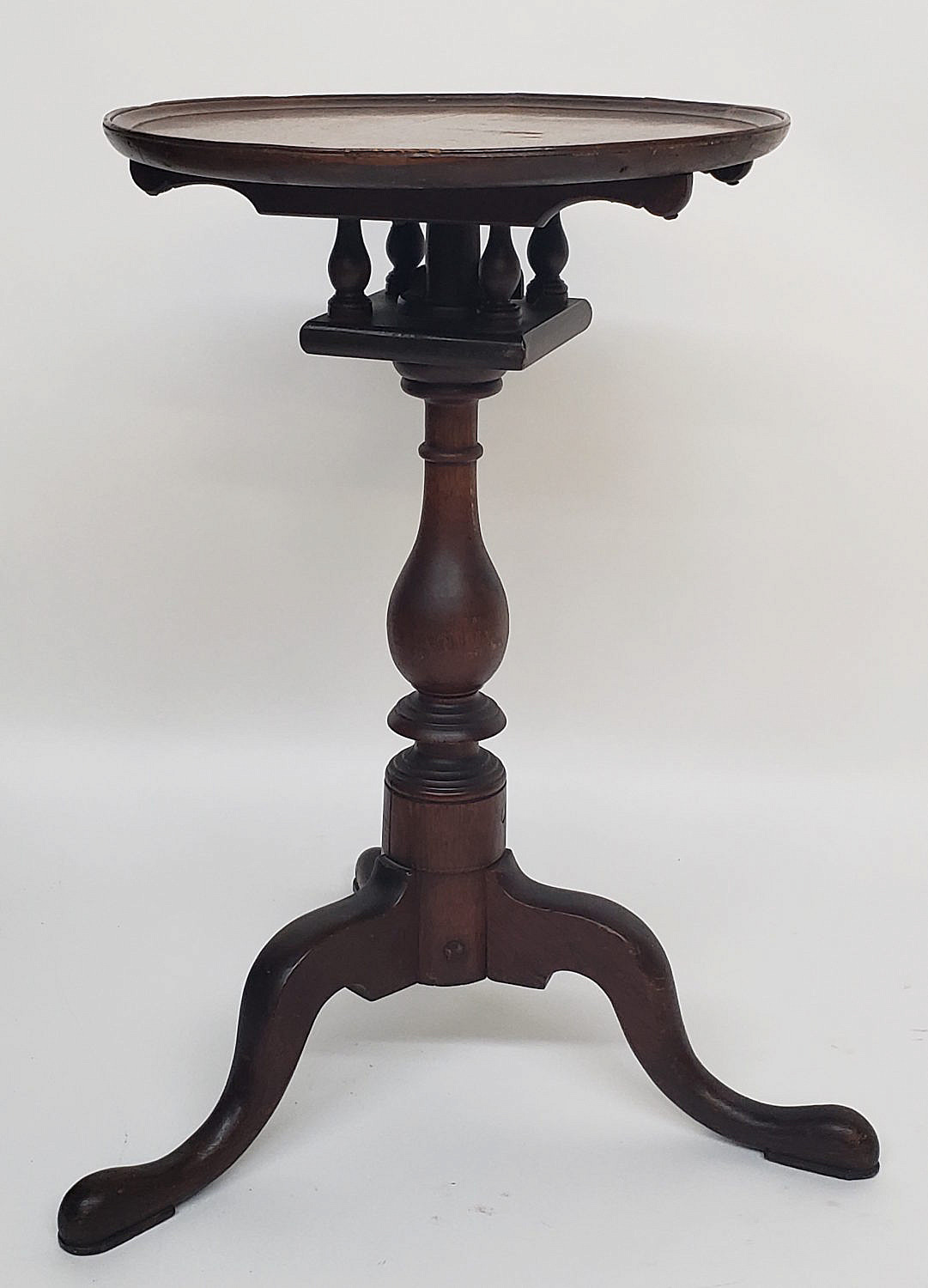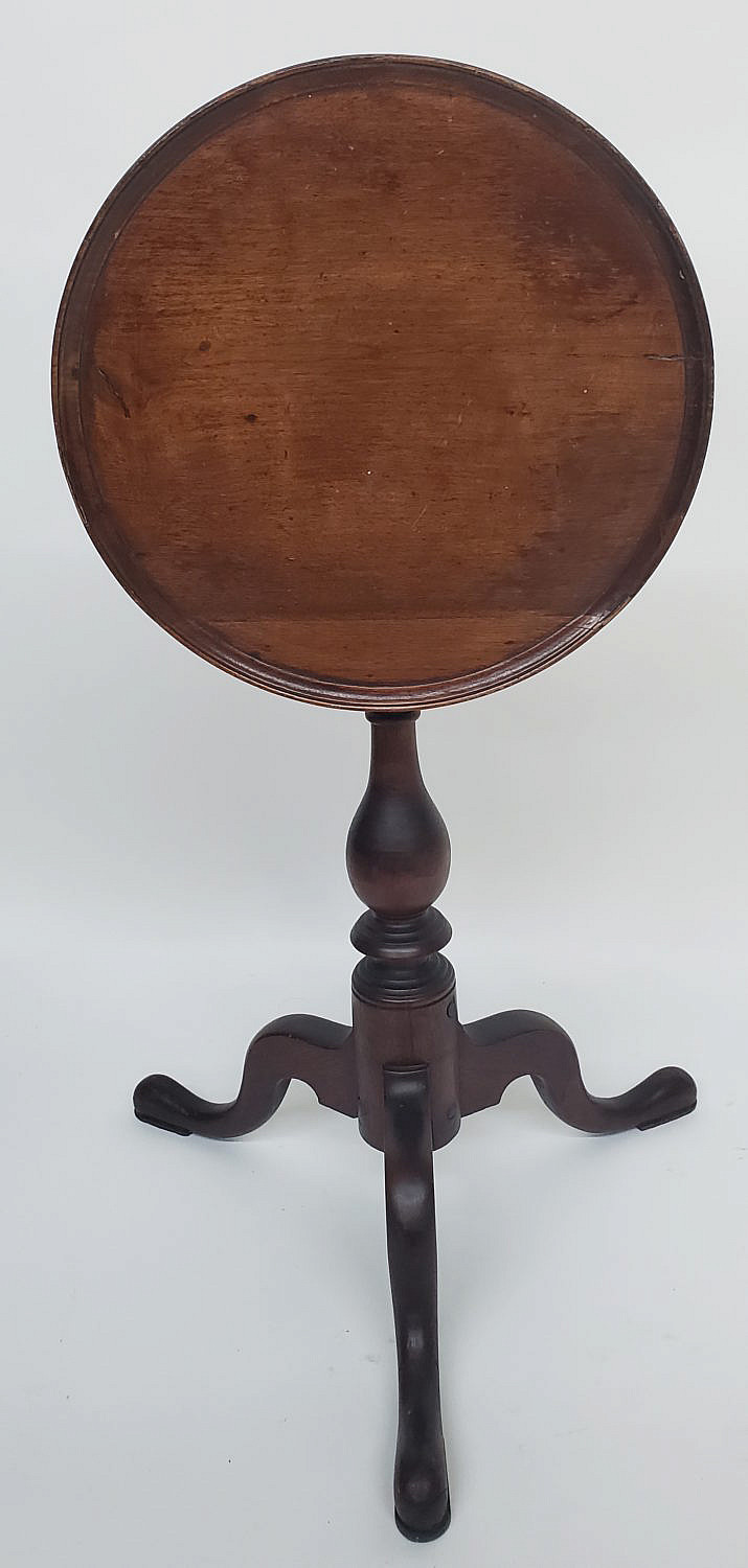 18th Century Chippendale Philadelphia Tilt and Turn Top Candle Stand Consign Now DeptAmericana and Folk Arts, Furniture/Decorative ArtsSizeHeight 27 ¼ in. Top Diameter 17 in. 18th Century Chippendale Philadelphia Tilt and Turn Top Candle Stand, dish top with bird cage support, turned teardrop standard on slipper pad feet. Height 27 ¼ in. Top Diameter 17 in. Please note that this auction has ended. Click here for an overview of this auction.