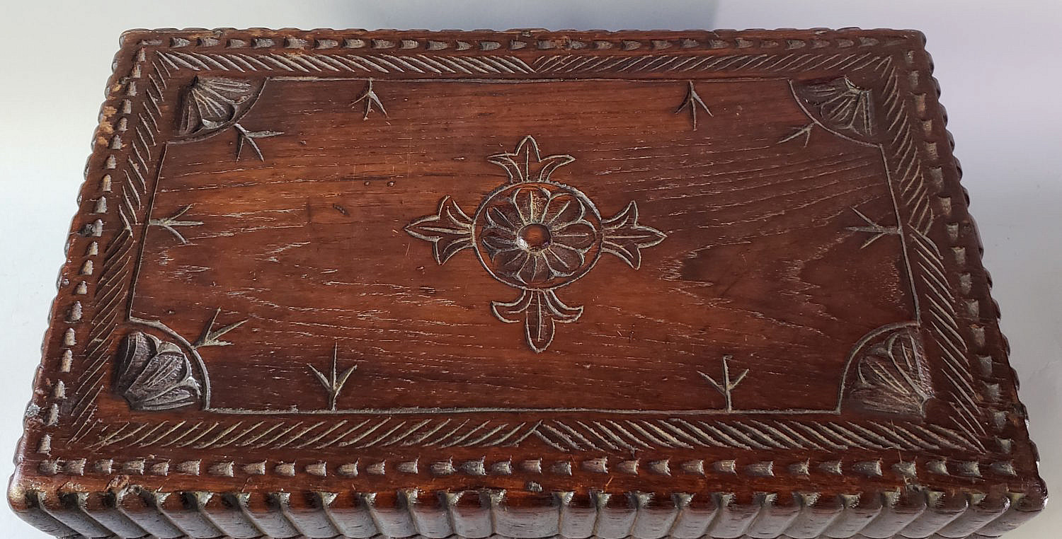 19th Century German Carved Folk Art Wood Traveling Secretary Box Consign Now DeptAmericana and Folk Arts, CollectionsSizeHeight 8.5 in. Width 17.75 in. Depth 10.75 in. 19th Century German Carved Folk Art Wood Traveling Secretary Box, dual brass flanking handles, hinged top exposing a compartmentalized interior. Height 8.5 in. Width 17.75 in. Depth 10.75 in. Please note that this auction has ended. Click here for an overview of this auction.