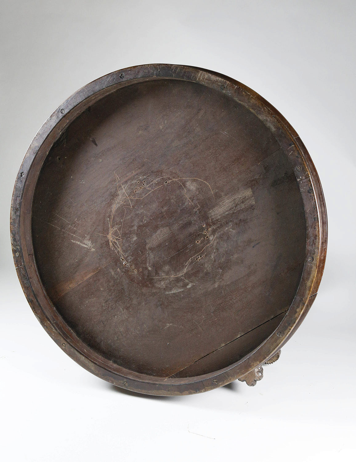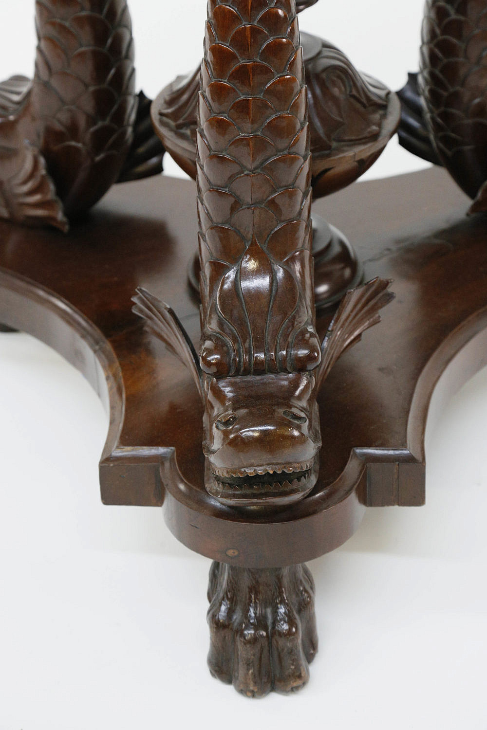 American Classical Mahogany Dolphin Base Center Table, circa 1870 Consign Now DeptFurniture/Decorative ArtsSizeHeight 28 in. Diameter 39 in. American Classical Mahogany Dolphin Base Center Table, circa 1870, tri-dolphins and urn on a plinth supported on paw carved feet, over-hanging top with plain frieze. Height 28 in. Diameter 39 in. Please note that this auction has ended. Click here for an overview of this auction.