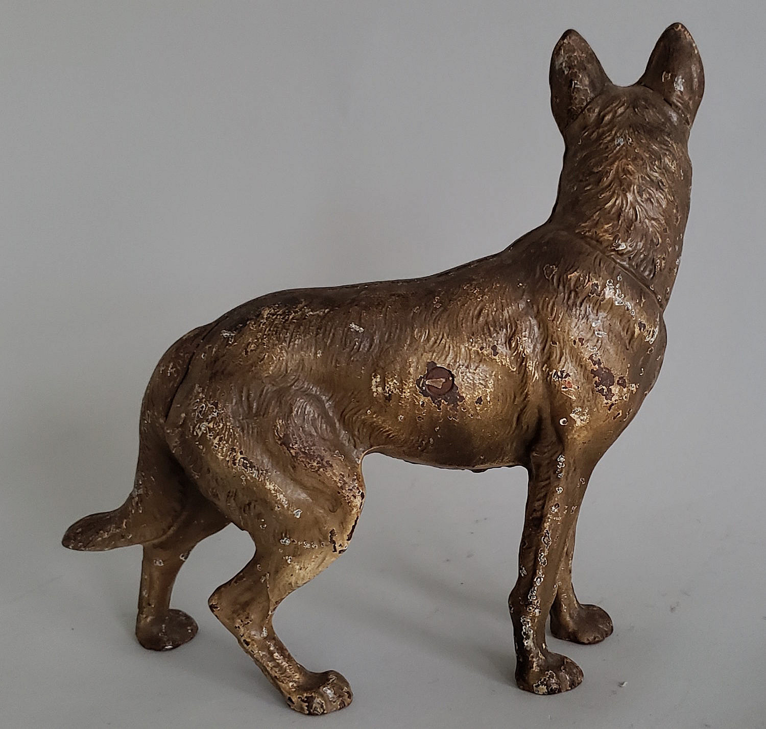 Antique Cast Iron German Shepard Figural Doorstop, original paint some paint loss consistent with age as seen in photos.