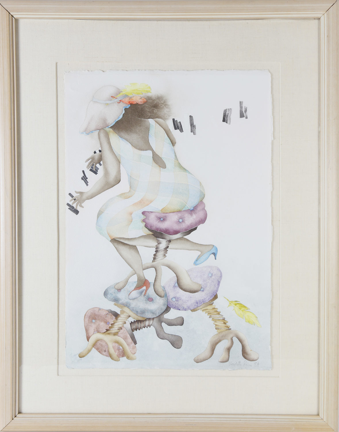 Charlotte Reine Watercolor on Paper of a Pianist Consign Now DeptFine ArtsSize23 ½ in. x 15 in. Overall 33 in. x 25 in. Charlotte Reine Watercolor on Paper of a Pianist, surrealism style, signed lower right Charlotte Reine “87, matted and framed. 23 ½ in. x 15 in. Overall 33 in. x 25 in. Please note that this auction has ended. Click here for an overview of this auction.