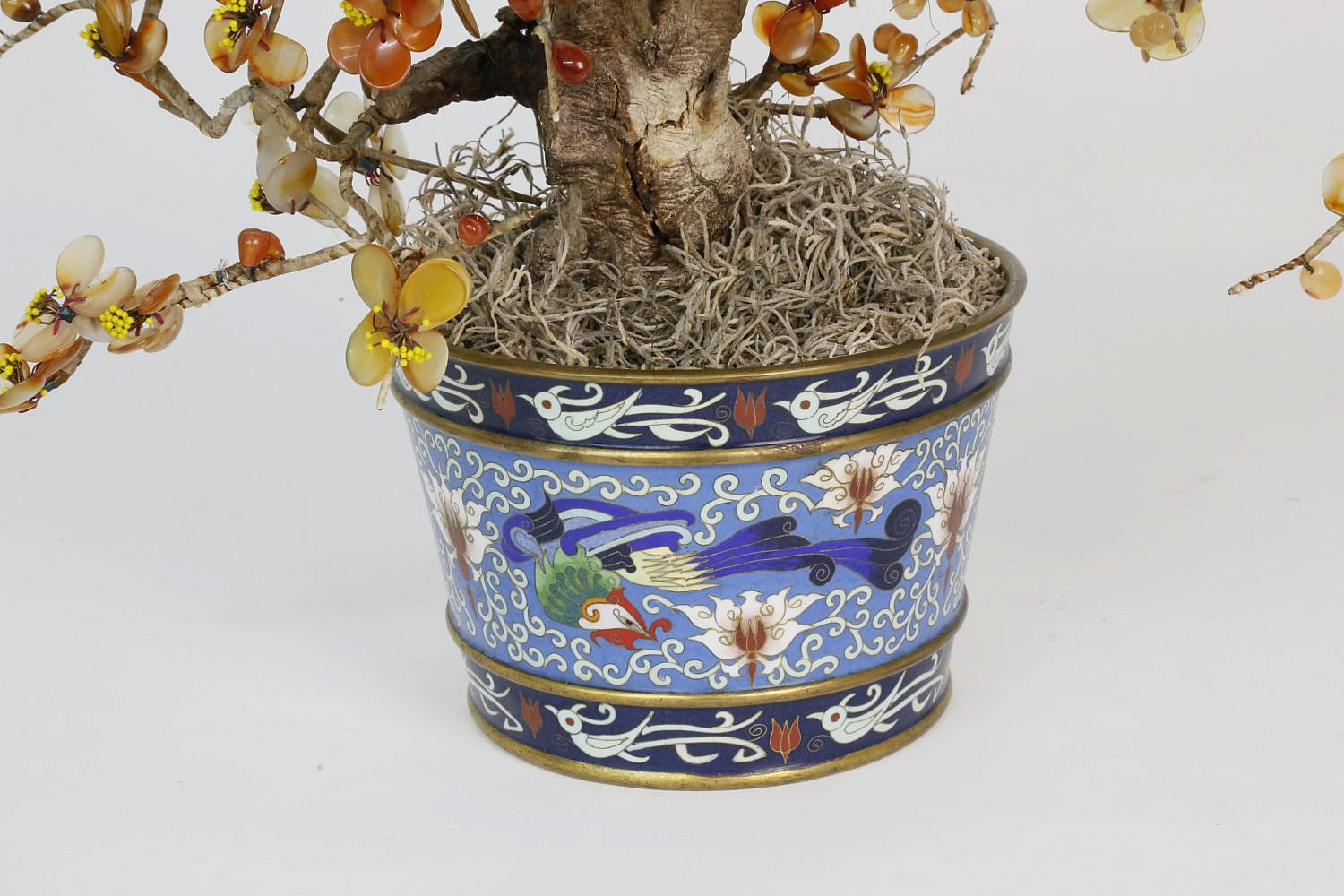 Chinese Carnelian Tree in a Cloisonne Pot, 20th century Consign Now DeptAsian Arts/China Trade, Furniture/Decorative ArtsSizeHeight 19 in. Width 20 in. Depth 12 in. Pot Height 5 in. Diameter 7 in. Chinese Carnelian Tree in a Cloisonne Pot, 20th Century, close to 1,000 polished stone flower petals with beads in a cloisonne pot with birds and botanicals Height 19 in. Width 20 in. Depth 12 in. Pot Height 5 in. Diameter 7 in. Please note that this auction has ended. Click here for an overview of this auction.