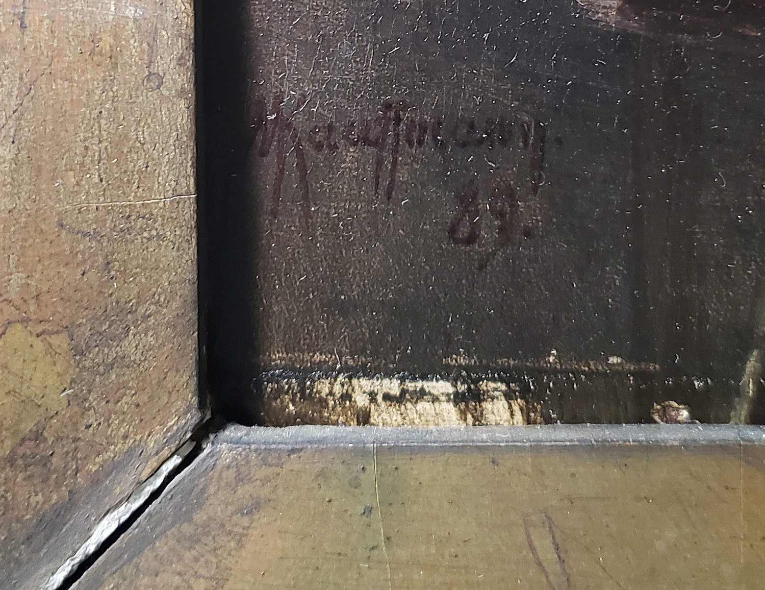Hugo Kaufmann (German 1868-1919) Oil on Board “Two Men Conversing Over Drink and Smoke”, circa 1898, signed lower right, “H. Kaufmann ’89”.