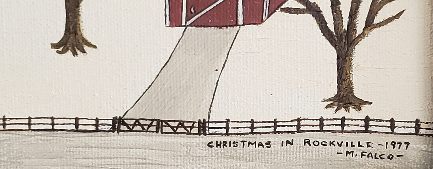 Michael Joseph Falco Oil on Canvas, “Christmas in Rockville-1977” Consign Now DeptAmericana and Folk Arts, Collections, Fine ArtsSize9 in. x 12 in. Overall 12 in. x 15 in. Michael Joseph Falco (American 1931-2006) Oil on Canvas, “Christmas in Rockville-1977”, signed lower right, “M. Falco”. 9 in. x 12 in. Overall 12 in. x 15 in. Please note that this auction has ended. Click here for an overview of this auction.