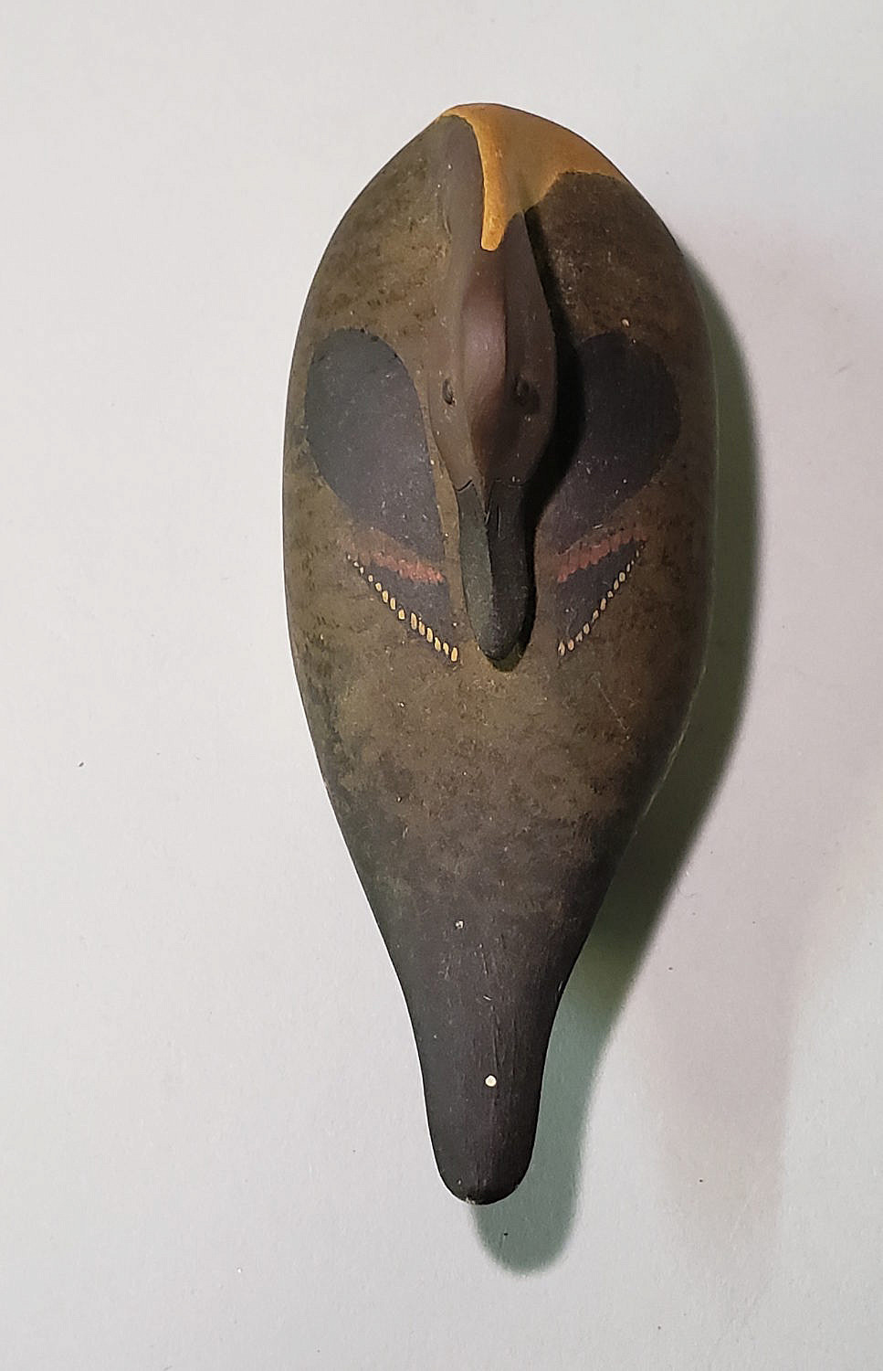 Miniature Hand Carved and Painted Duck Decoy, signed upon the base, “F.J.A”