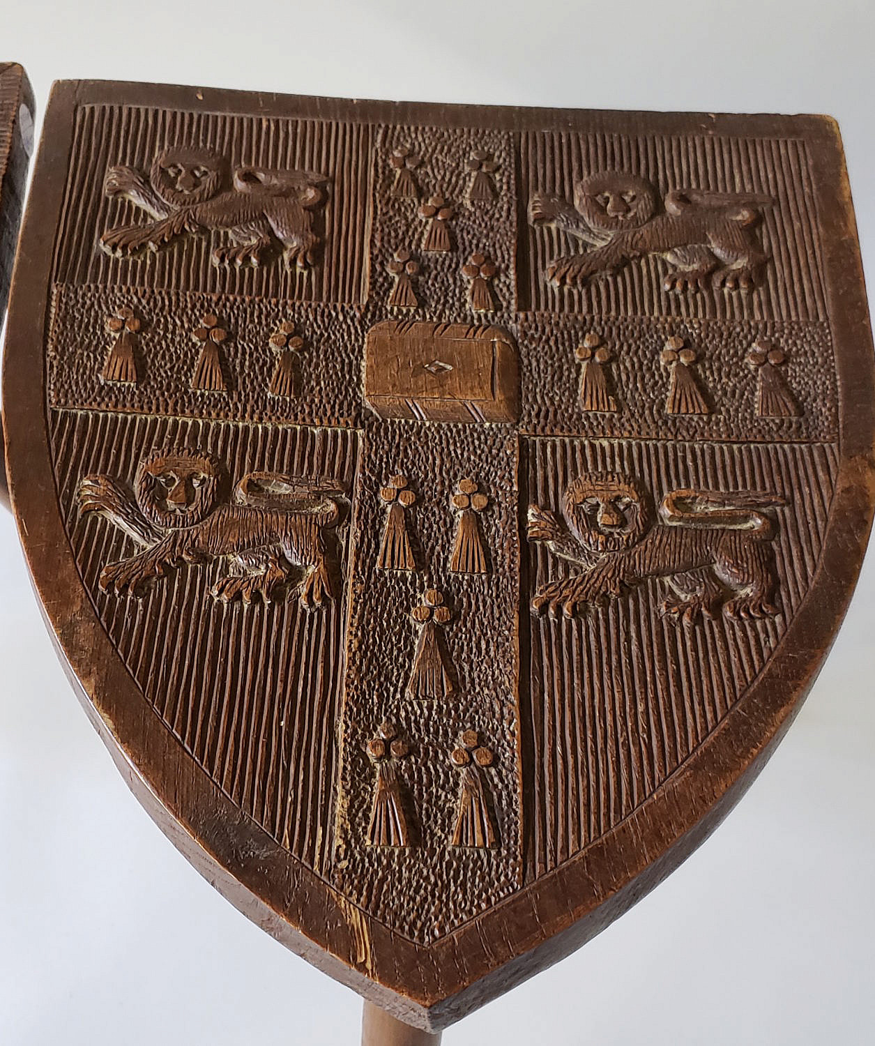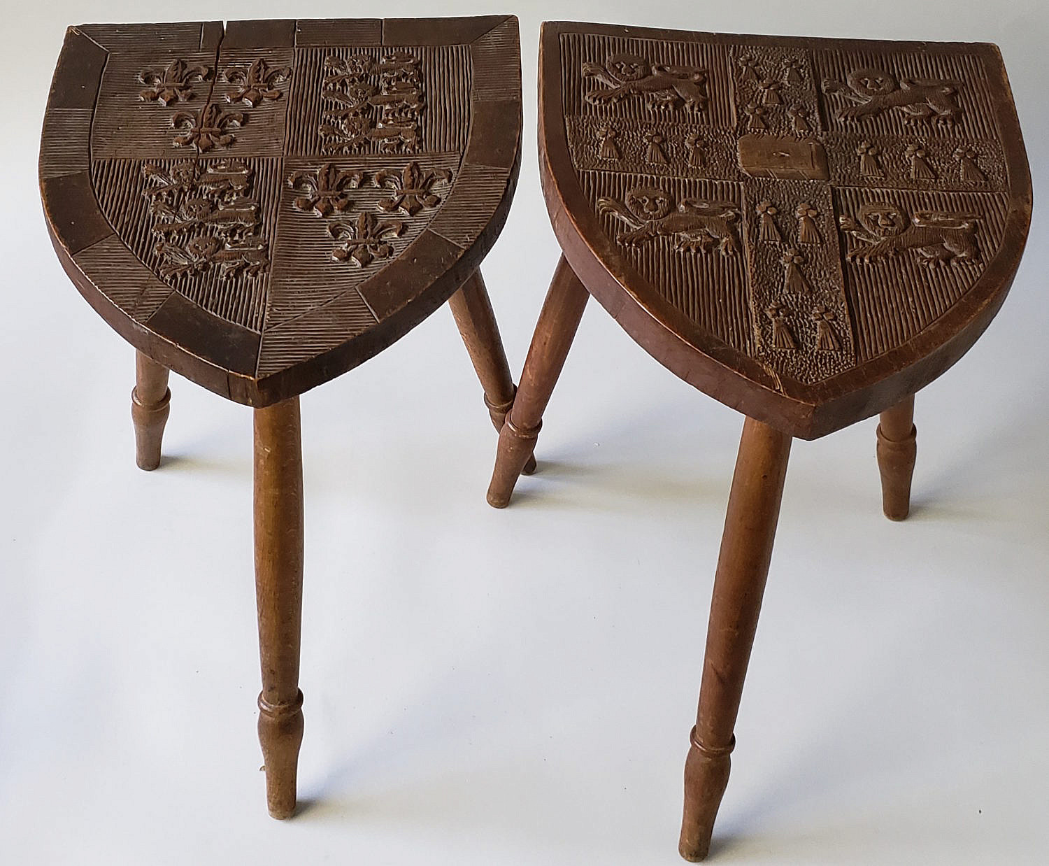 Pair of Antique English Carved Walnut Coat-of-Arms Stools Consign Now DeptAmericana and Folk Arts, Furniture/Decorative ArtsSizeHeight 16.5 in. Width 11 in. Depth 13 in. Pair of Antique English Carved Walnut Coat-of-Arms Stools, tripod base Height 16.5 in. Width 11 in. Depth 13 in. Please note that this auction has ended. Click here for an overview of this auction.