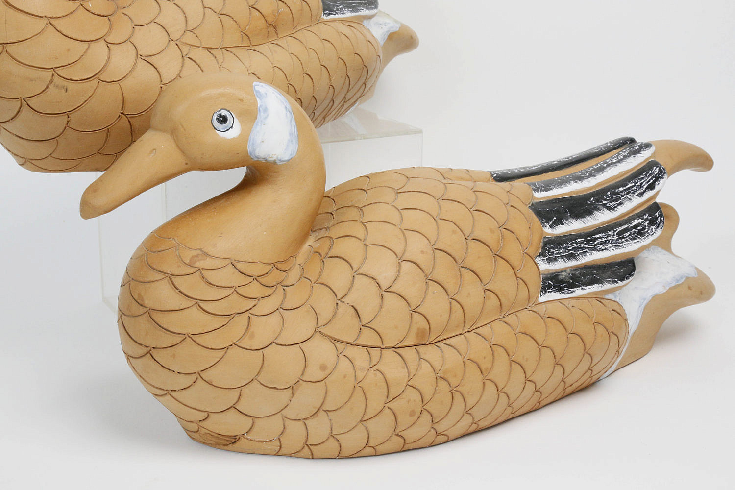 Pair of Italian Painted Terra Cotta Swimming Ducks Consign Now DeptCeramics & Glass, Furniture/Decorative ArtsSizeHeight 9 in. Length 19 in. Width 8.5 in. Pair of Italian Painted Terra Cotta Swimming Ducks, inscribed in paint upon the base “R.A.M.A. Made in Italy A.152” Height 9 in. Length 19 in. Width 8.5 in. Please note that this auction has ended. Click here for an overview of this auction.