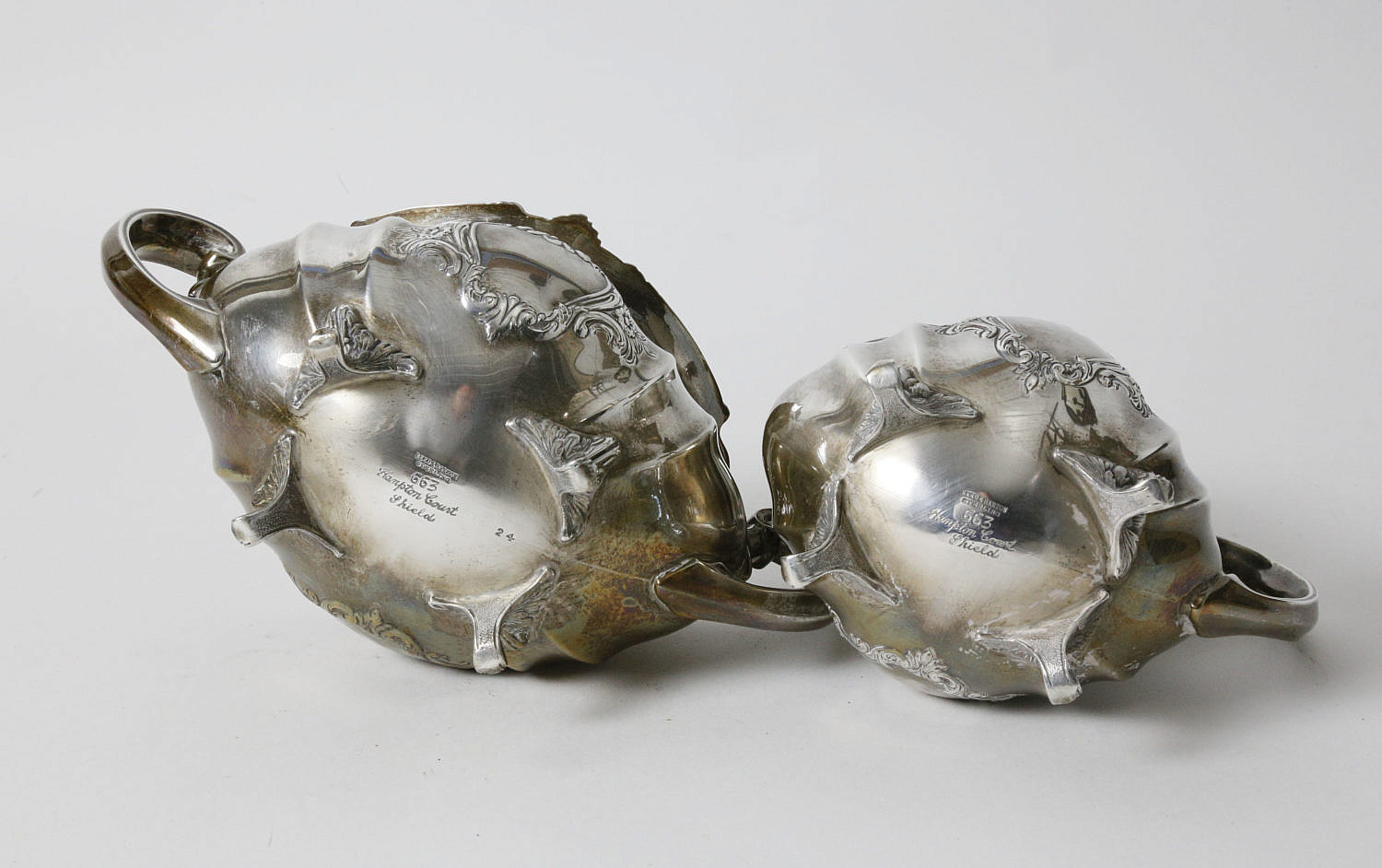 Reed and Barton Sterling Silver Creamer and Open Sugar Bowl Consign Now DeptSilverSizeCreamer 5 in. Open sugar 3.25 in. x 8 in. x 4.5 in. Reed and Barton Sterling Silver Creamer and Open Sugar Bowl in the Hampton Court Shield Pattern, stamped upon the base Reed & Barton Sterling 663 Hampton Court Shield; 21.85 troy ounces Creamer 5 in. Open sugar 3.25 in. x 8 in. x 4.5 in. Please note that this auction has ended. Click here for an overview of this auction.