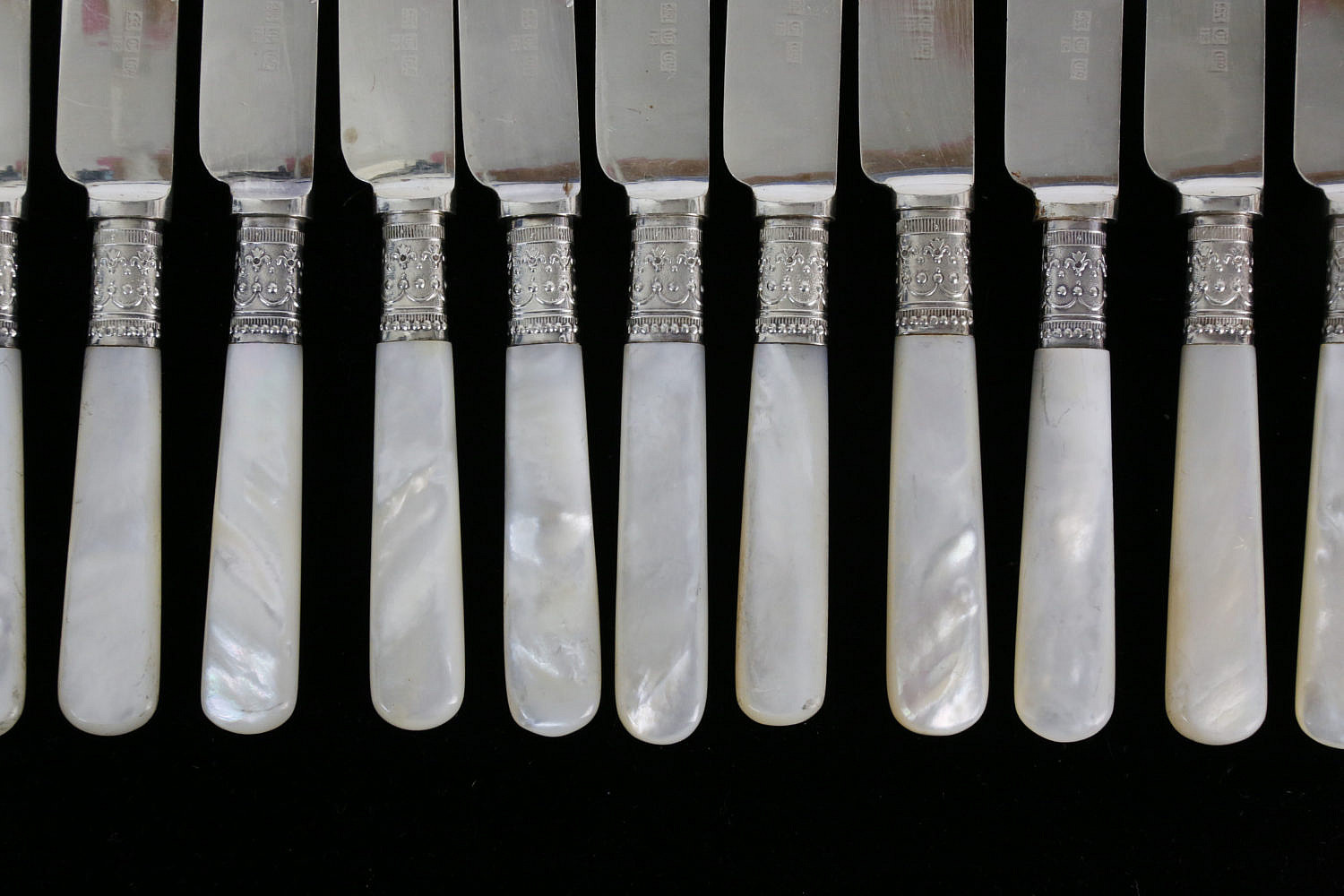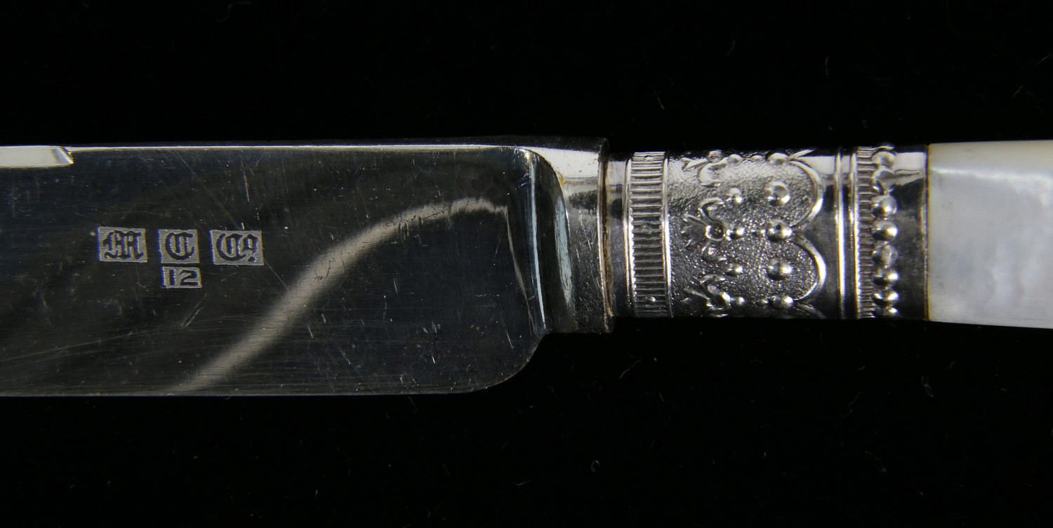 Set of 12 Mother of Pearl Handle Dessert Knives Consign Now DeptFurniture/Decorative ArtsSizeLength 7.75 in. Set of 12 Mother of Pearl Handle Dessert Knives, late 19th Century, Meriden Cutlery Company Length 7.75 in. Please note that this auction has ended. Click here for an overview of this auction.