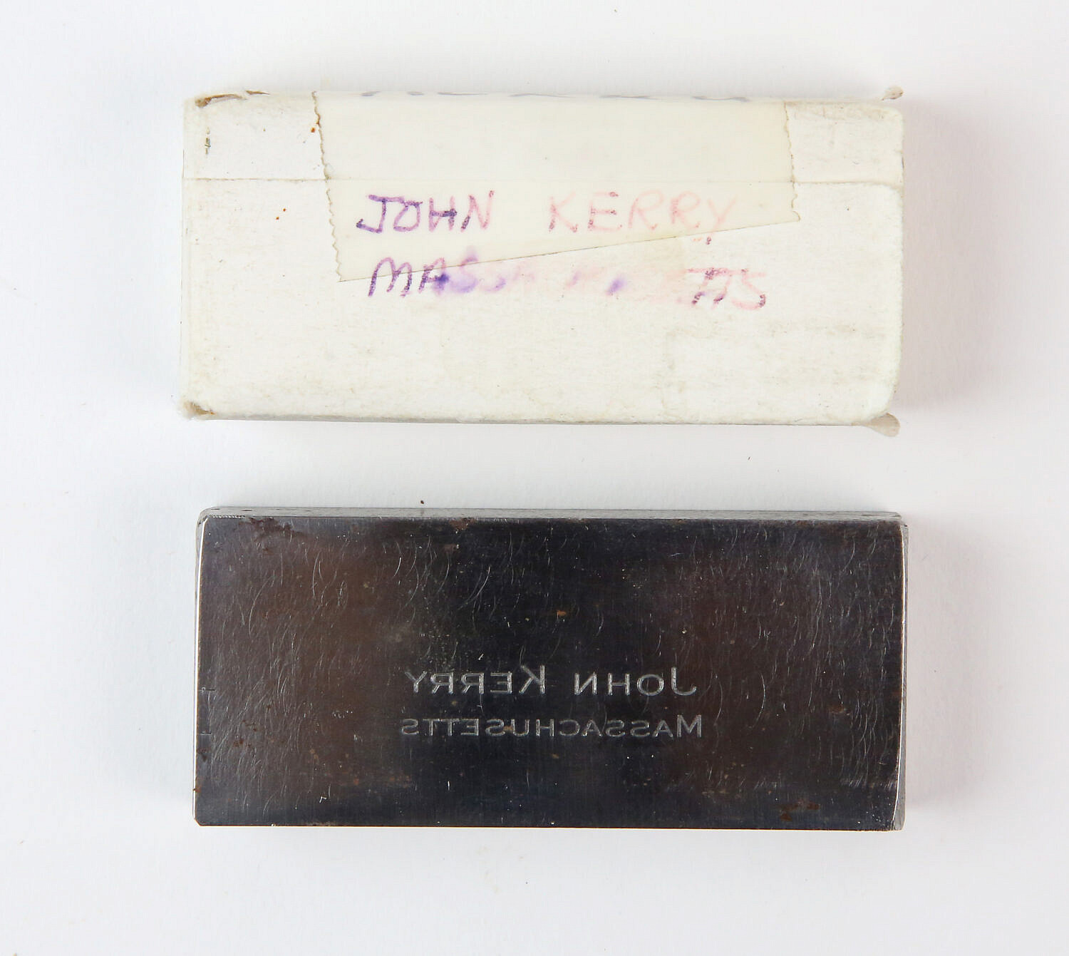 Group of Four “Kennedy Clan” Steel Engraving Plates Consign Now DeptDecorative Arts, SilverSizeLengths 2.25 in. to 3.75 in. Group of Four “Kennedy Clan” Steel Engraving Plates for stationery and or calling cards including: “Edward M. Kennedy, Washington DC 2002” “The Kennedy Family PO Box 1501 Washington DC 20013” “Edward M. Kennedy Massachusetts” “John Kerry Massachusetts” Lengths 2.25 in. to 3.75 in. Please note that this auction has ended. Click here for an overview of this auction.