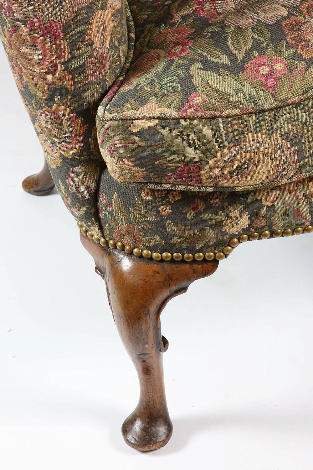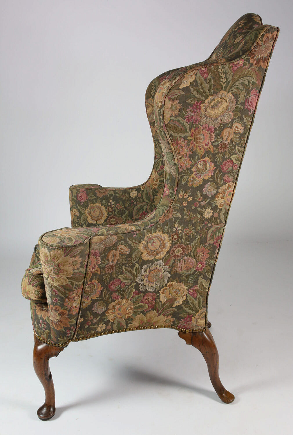 Queen Anne Walnut Wing Armchair, early 18th Century Consign Now DeptFurniture, Furniture/Decorative ArtsSizeHeight 51 in. Width 33.5 in. Depth 28 in. Seat Height 20 in. Queen Anne Walnut Wing Armchair, early 18th Century, padded back, arms, and loose cushion, c-scroll cabriole legs ending in pad feet Height 51 in. Width 33.5 in. Depth 28 in. Seat Height 20 in. Please note that this auction has ended. Click here for an overview of this auction.